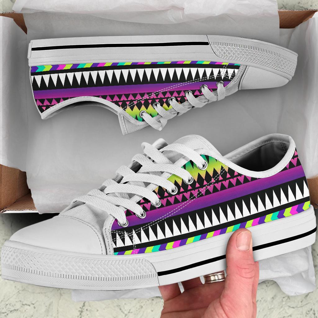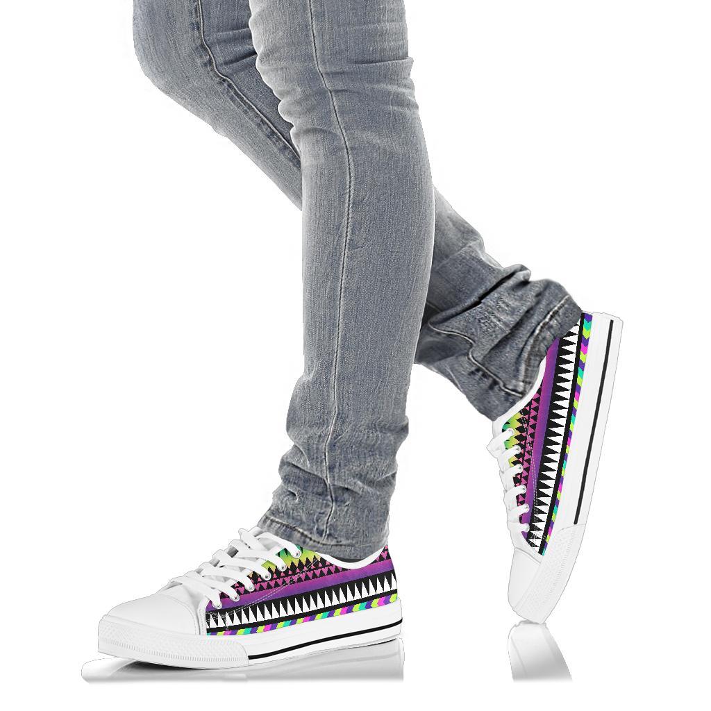Animal Skin Aztec Rainbow White Bottom Low Top Shoes