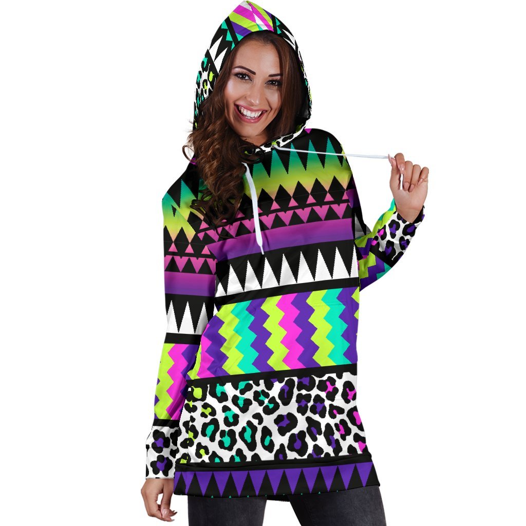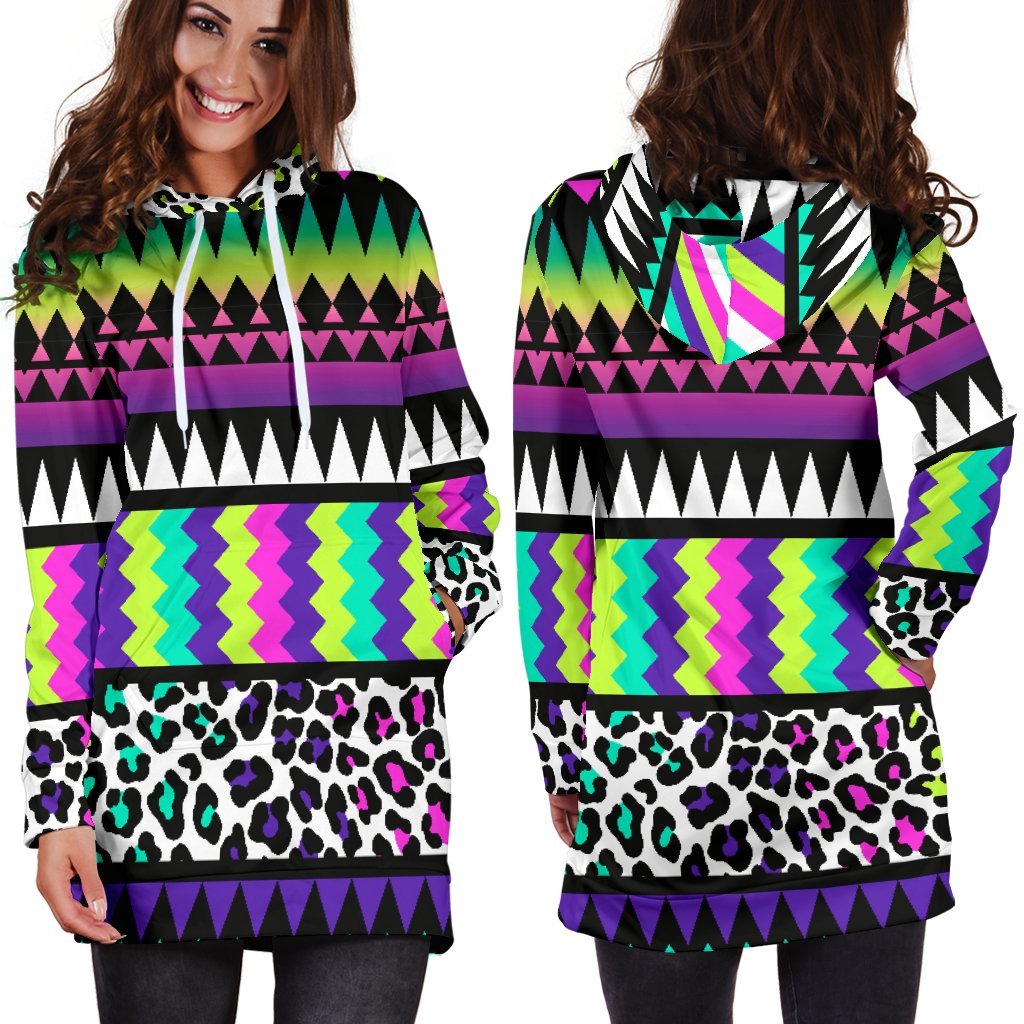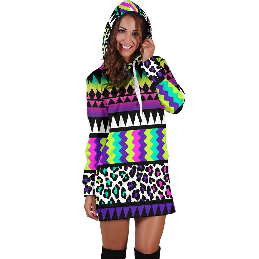 Animal Skin Aztec Rainbow Women Hoodie Dress