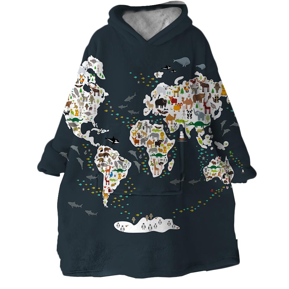 Animal World Map Swlf0530 Hoodie Wearable Blanket