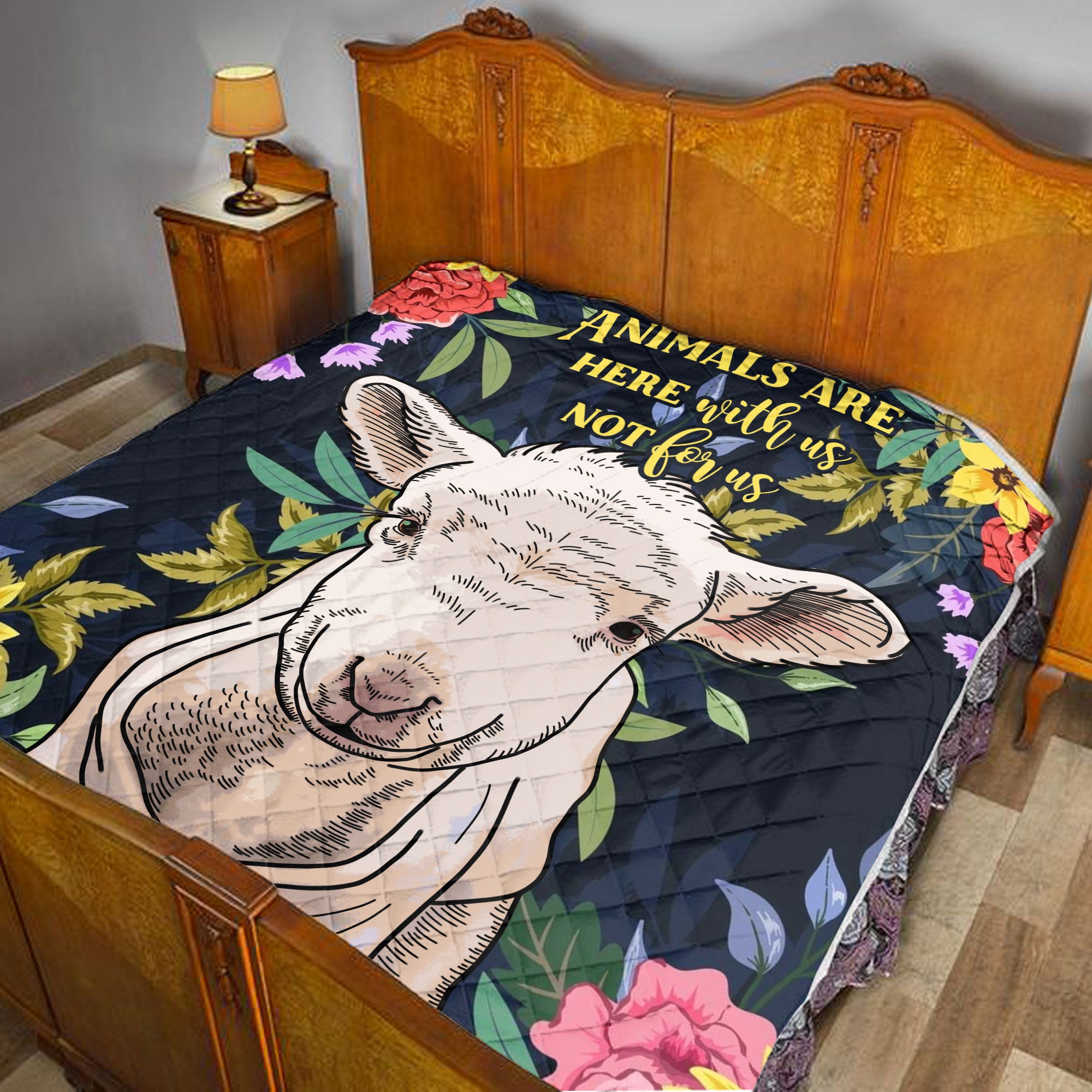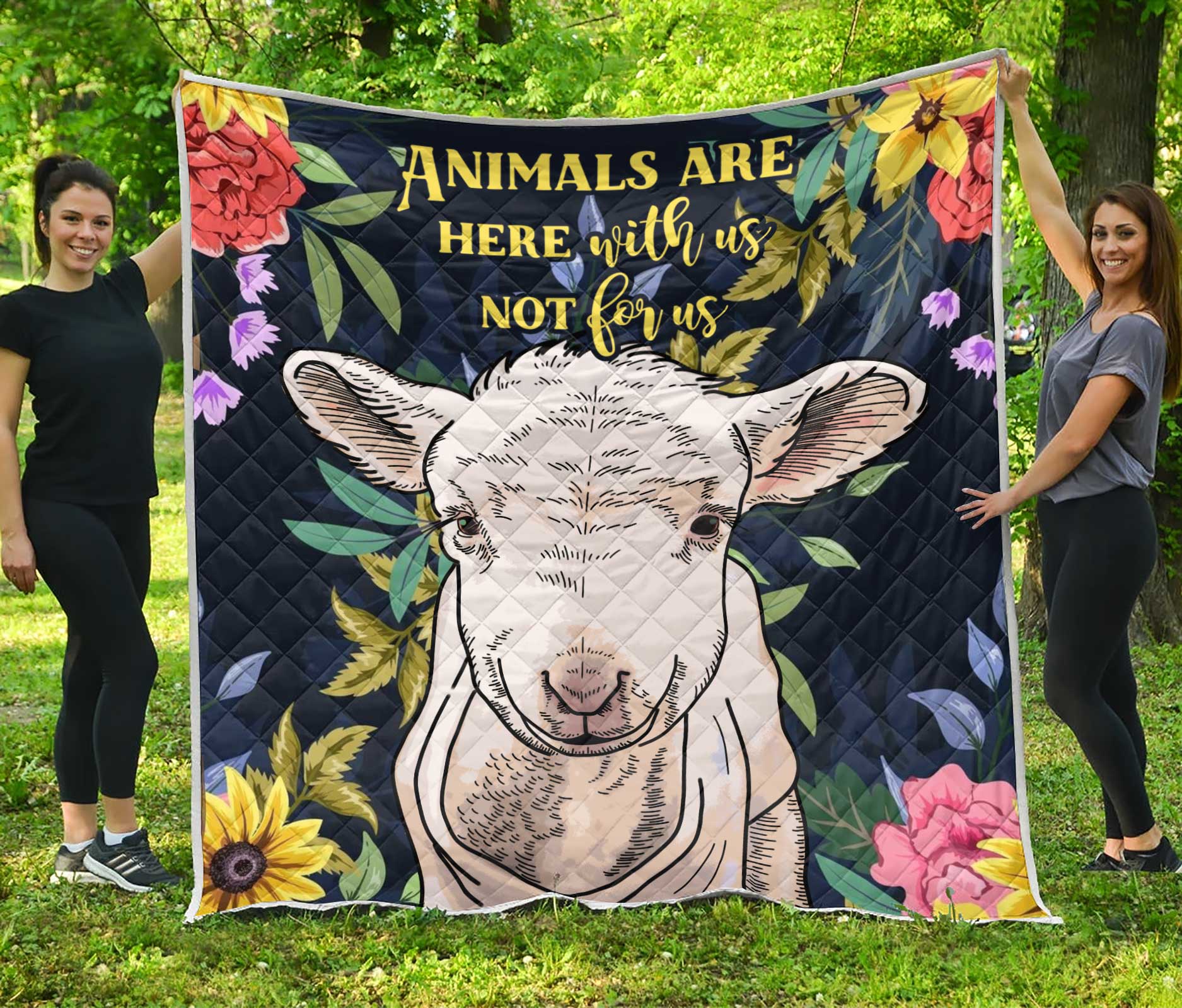 Animals Are Here With Us Not For Us Vegan Vegetarian Quilt Blanket
