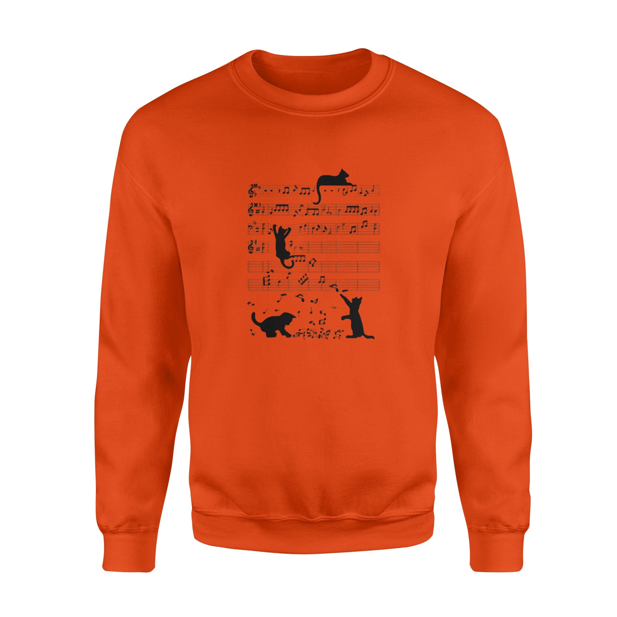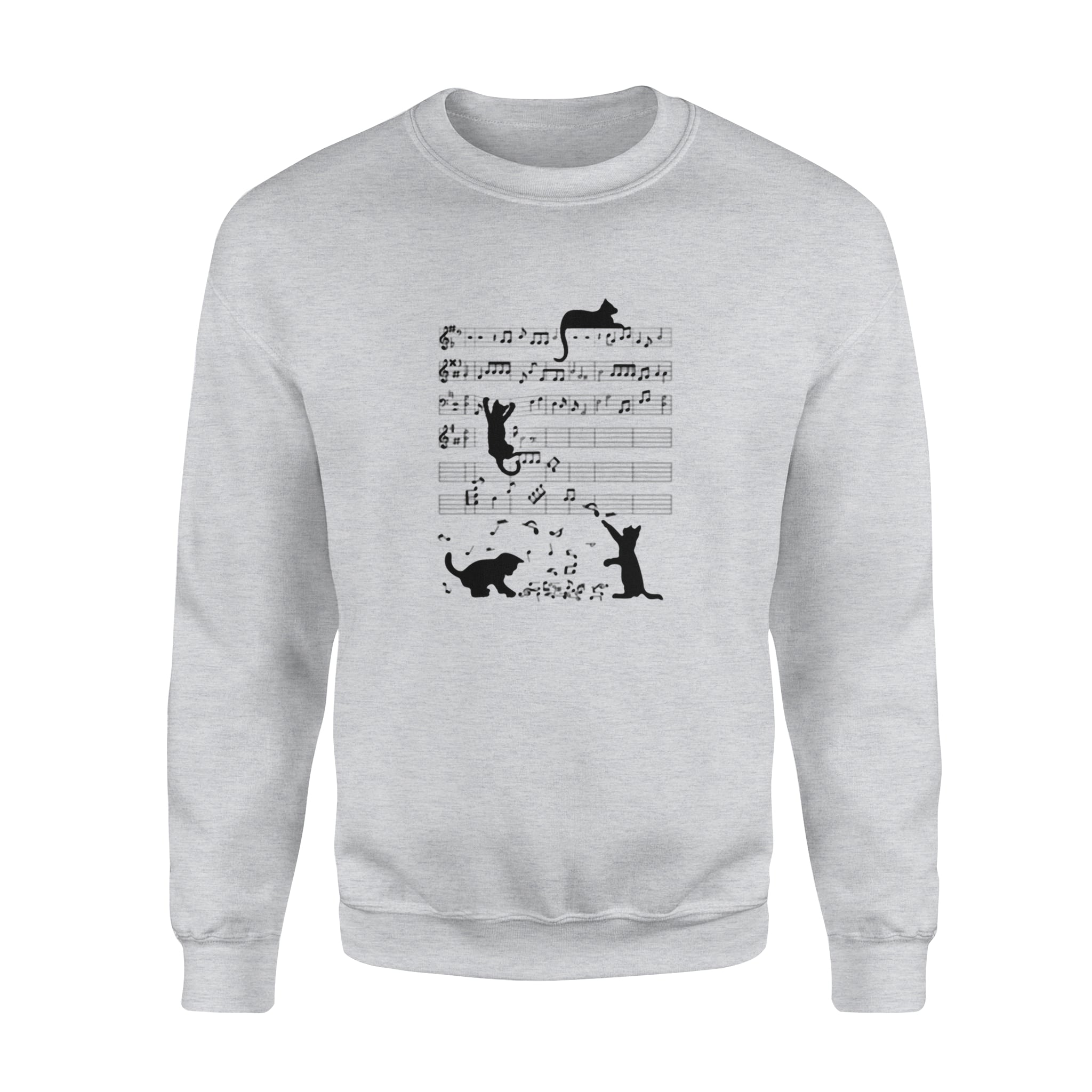 Animals gift idea Cute Cat Kitty Playing Music Note Clef Musician T-Shirt – Standard Fleece Sweatshirt