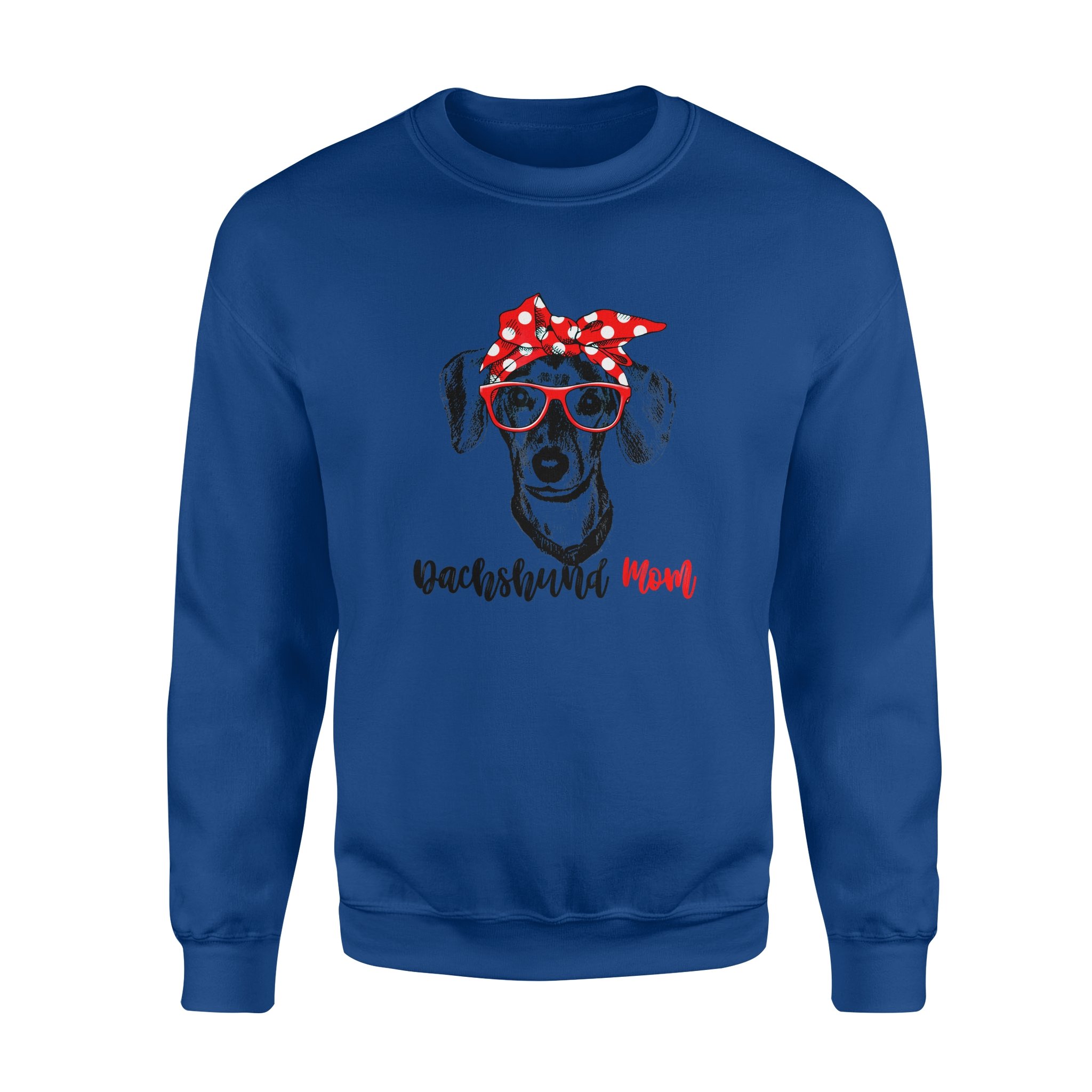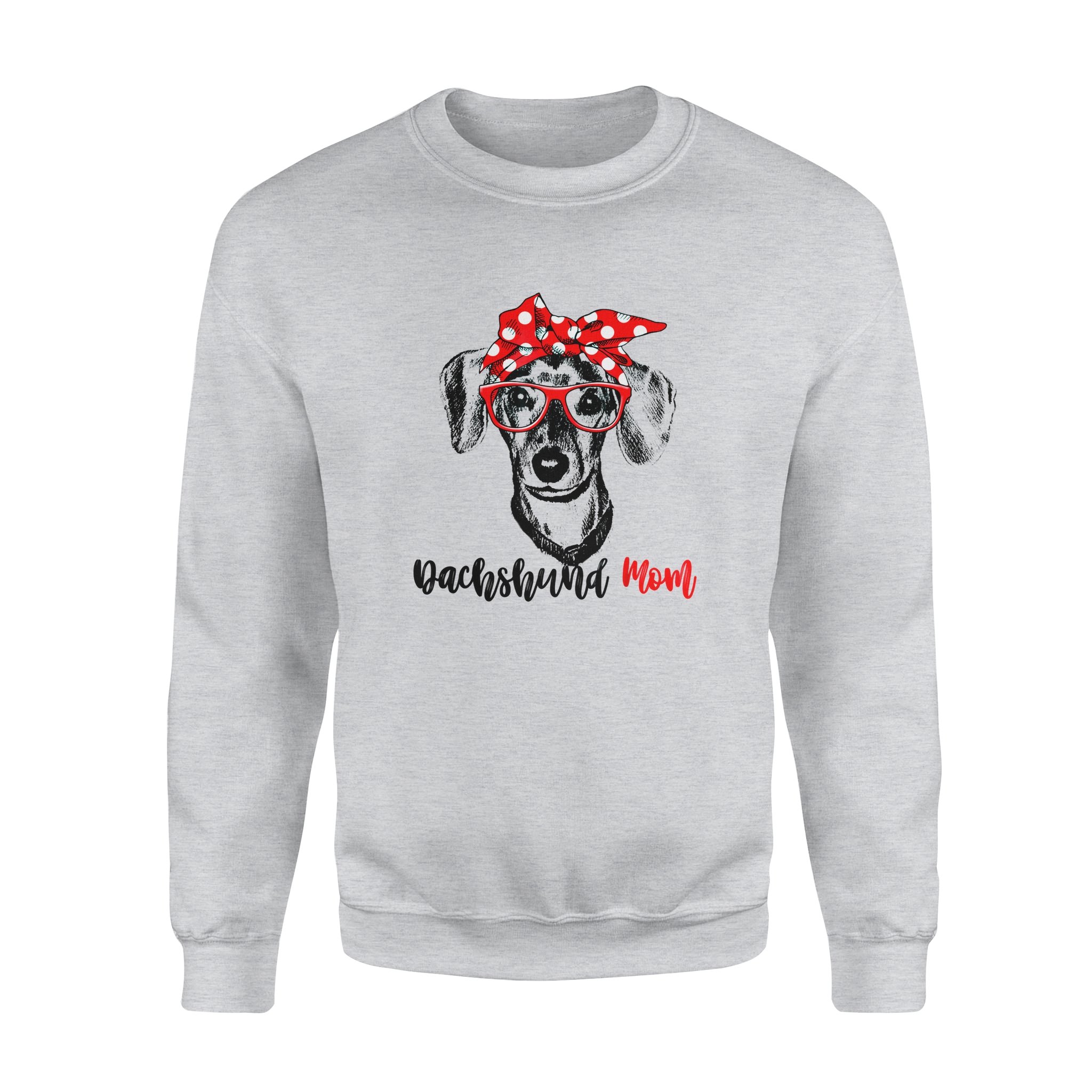 Animals gift idea Dachshund Mom Wearing red Glasses & Red Polka Dot Turban T-Shirt – Standard Fleece Sweatshirt