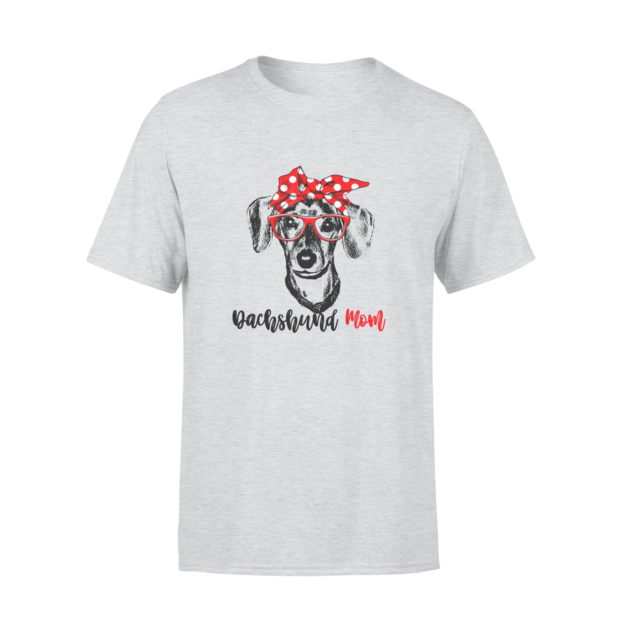 Animals gift idea Dachshund Mom Wearing red Glasses & Red Polka Dot Turban T-Shirt – Standard T-shirt