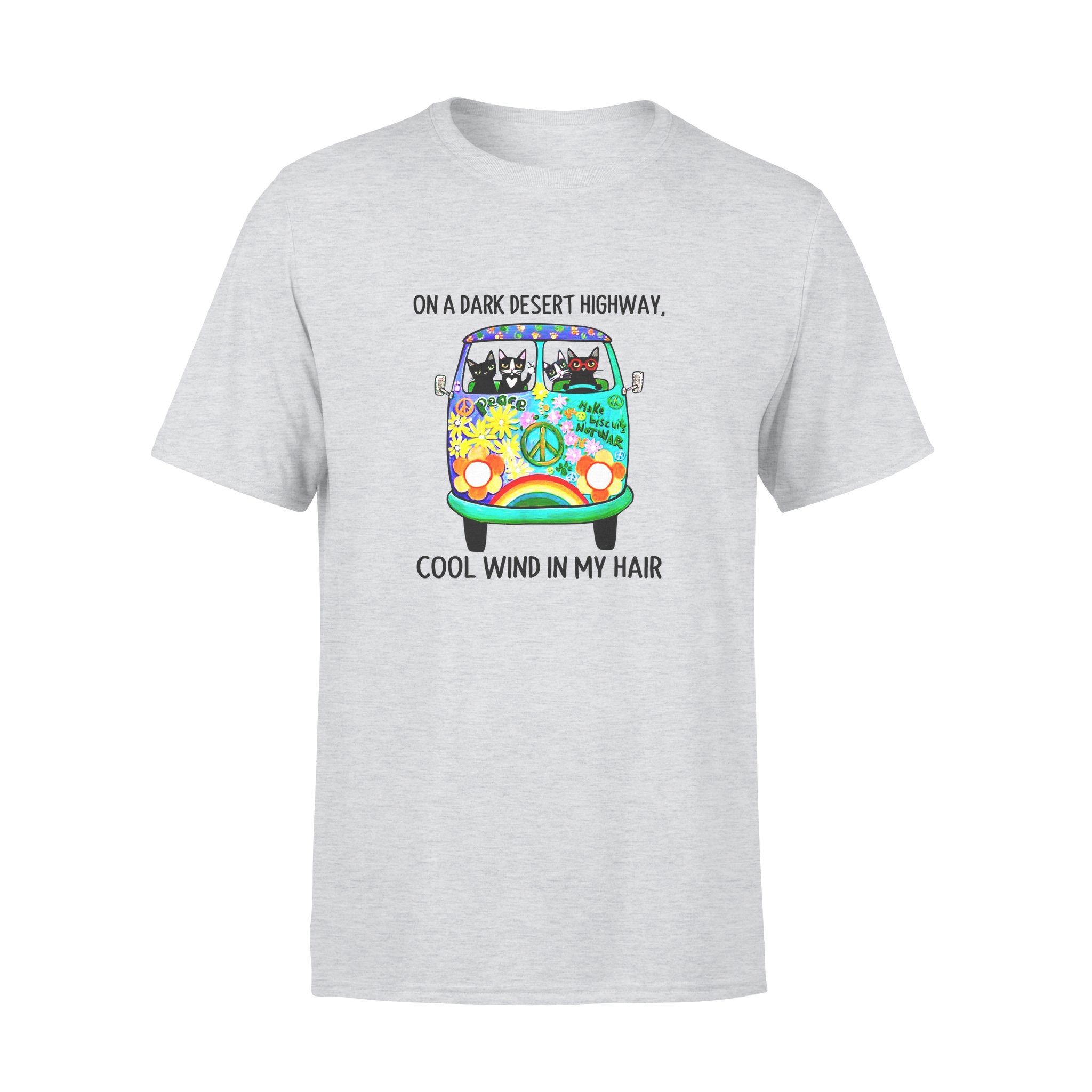 Animals gift idea In Hair On Dark Highway A Desert Cat Cool Wind Hipie t-Shirt – Standard T-shirt