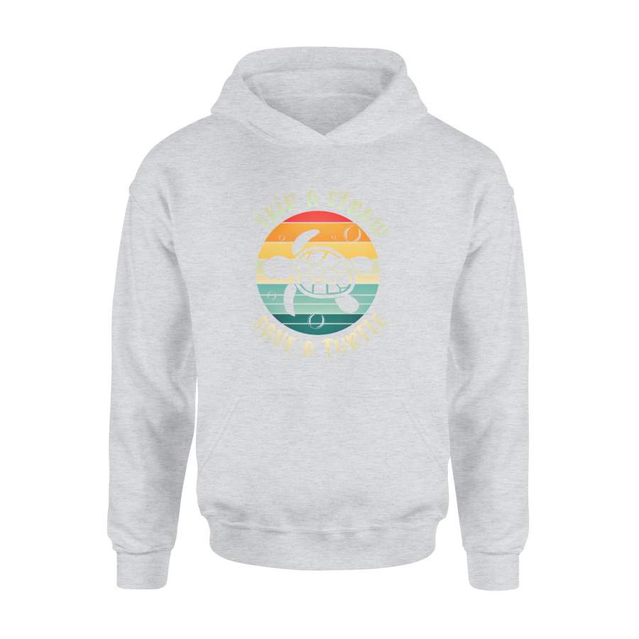 Animals gift idea Skip A Straw Save A Turtle Retro Sunset Sea Pullover T-Shirt – Standard Hoodie