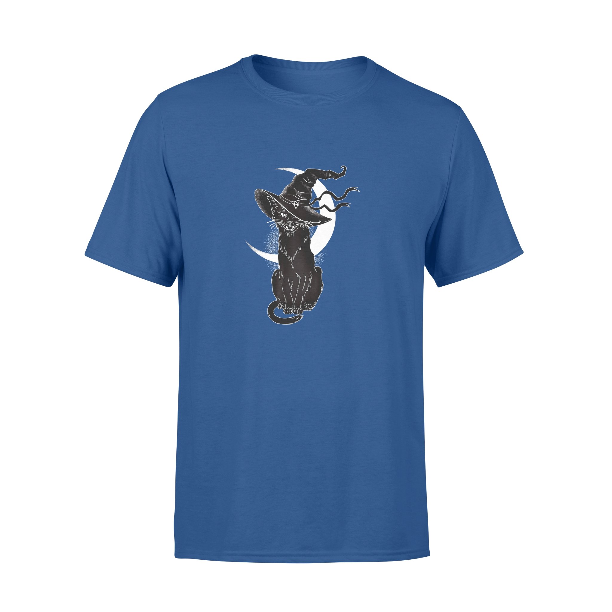 Animals gift idea Vintage Scary Halloween Black cat Costume Witch Hat & Moon T-Shirt – Standard T-shirt