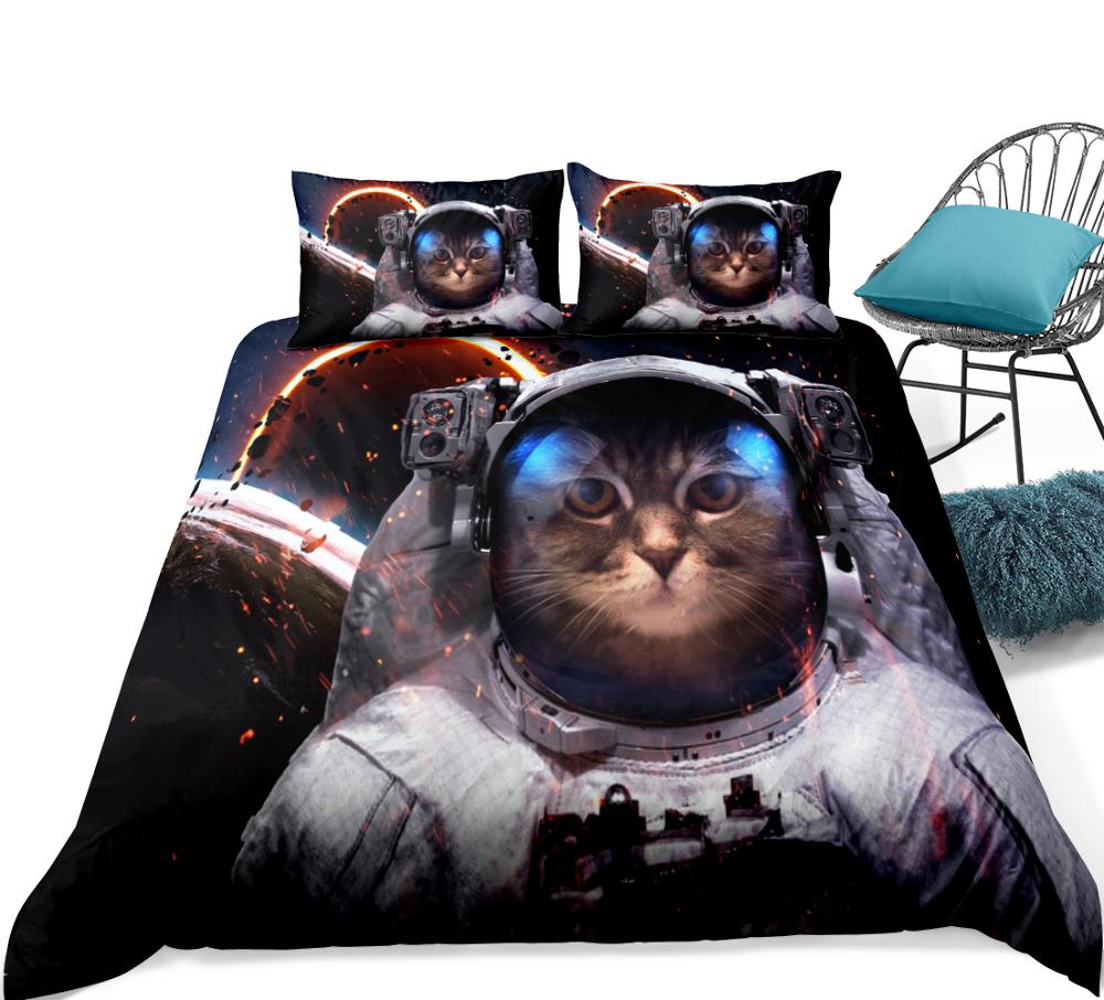 Astronaut Cat Space Animals Duvet Cover Set, Microfiber Fabric, Twin/Full/Queen/King Bedding For Teen