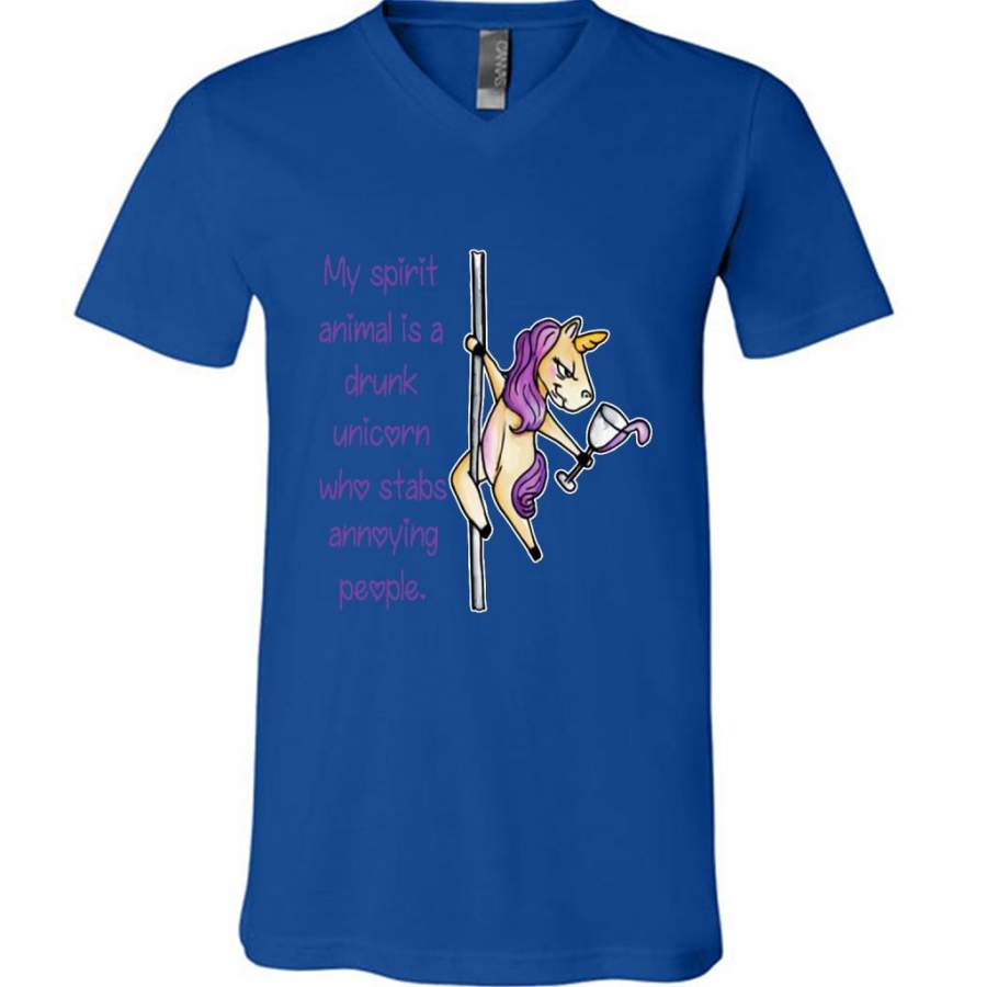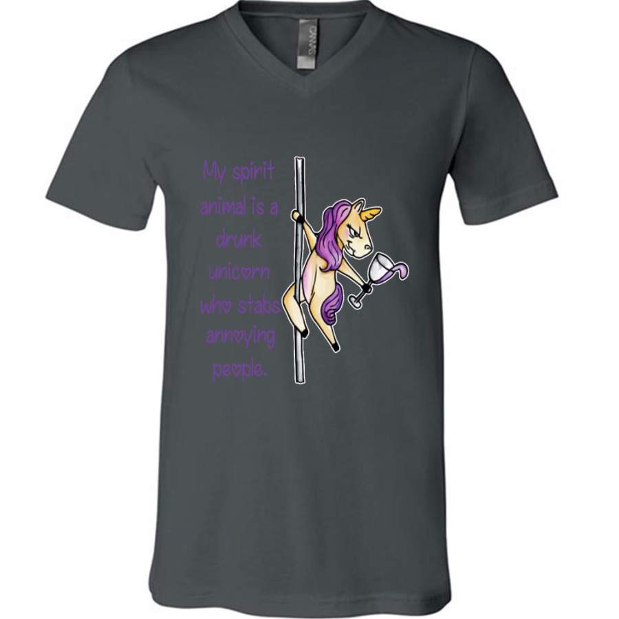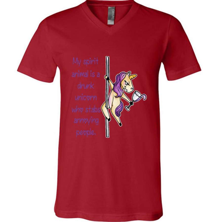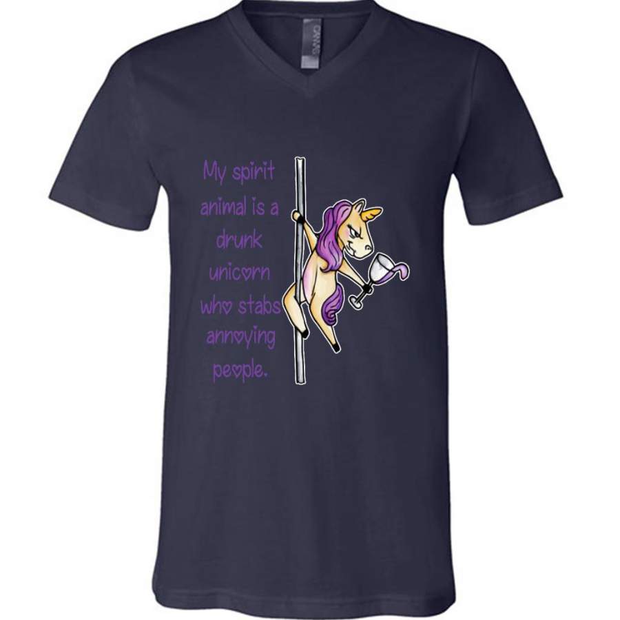 My Spirit Animal Is A Drunk Unicorn Who Stabs Annoying People, Wine LOver – Canvas Unisex V-Neck Shirt