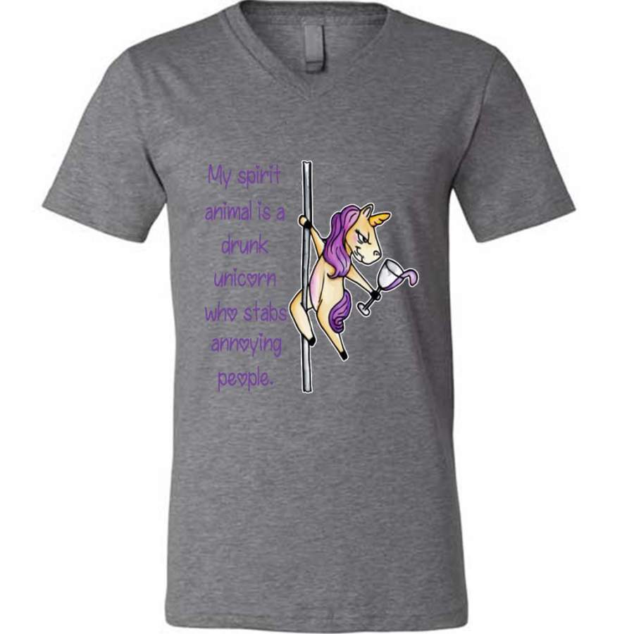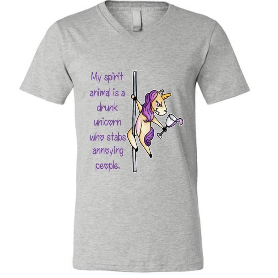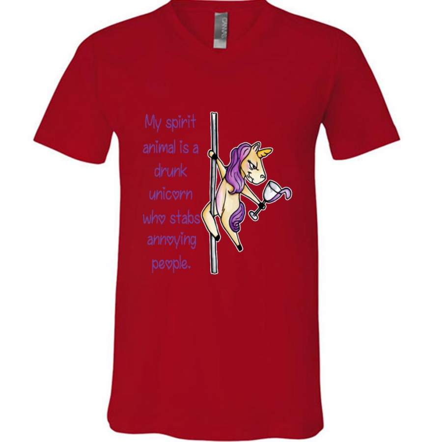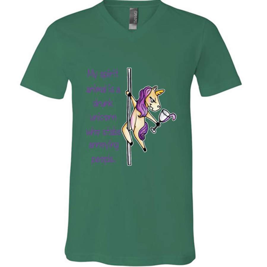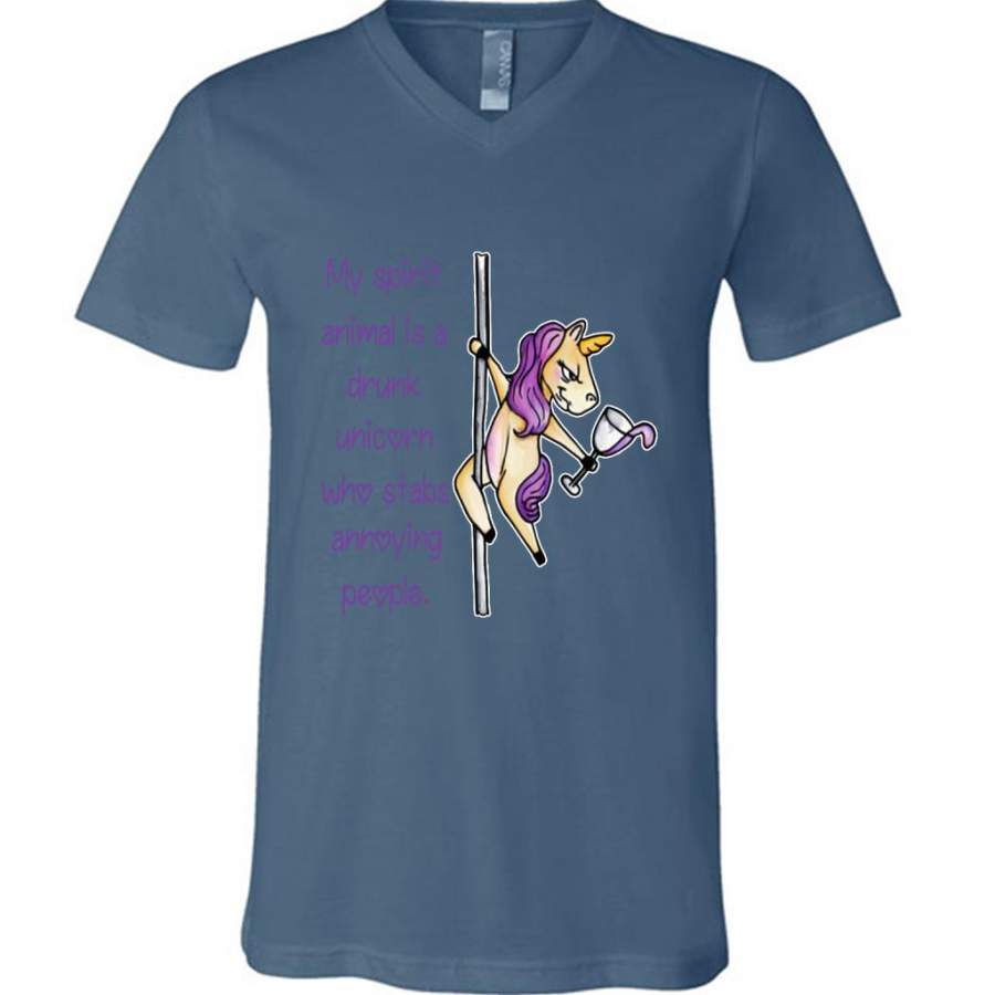 My Spirit Animal Is A Drunk Unicorn Who Stabs Annoying People, Wine LOver – Canvas Unisex V-Neck Shirt