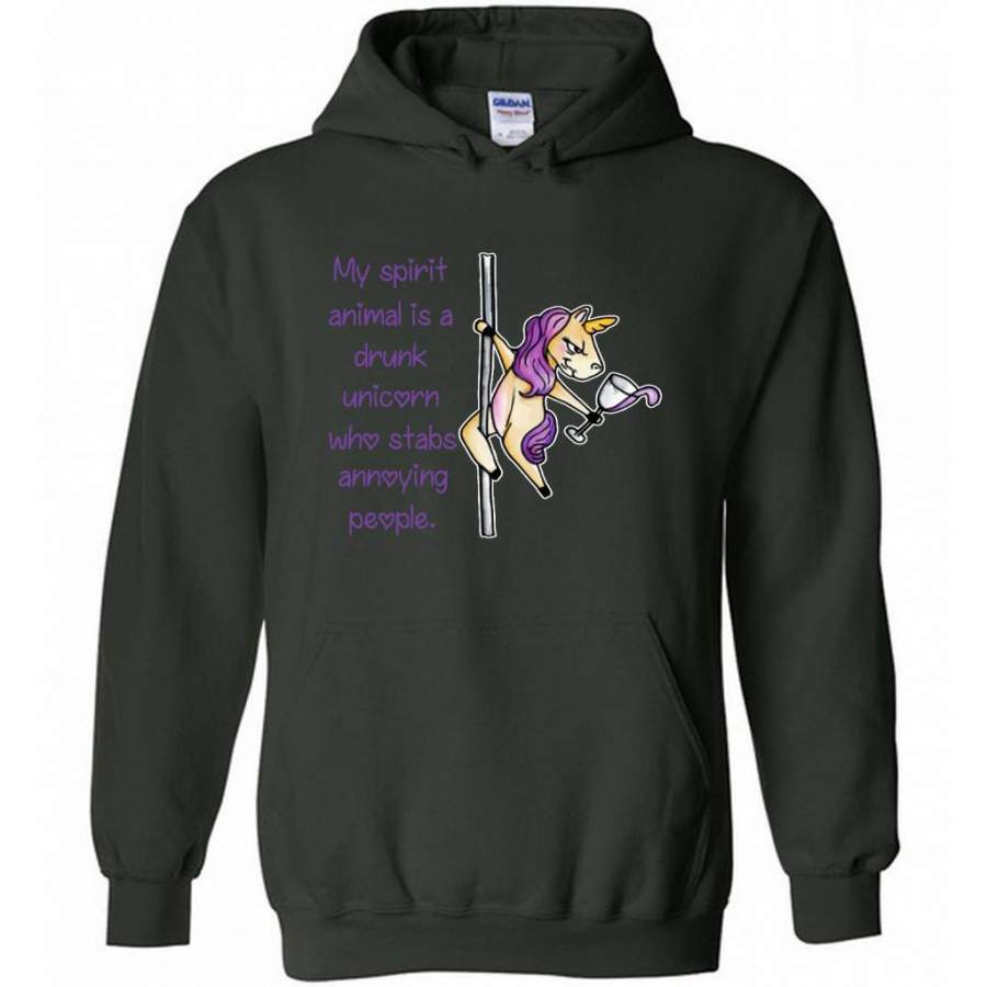My Spirit Animal Is A Drunk Unicorn Who Stabs Annoying People, Wine LOver – Gildan Heavy Blend Hoodie