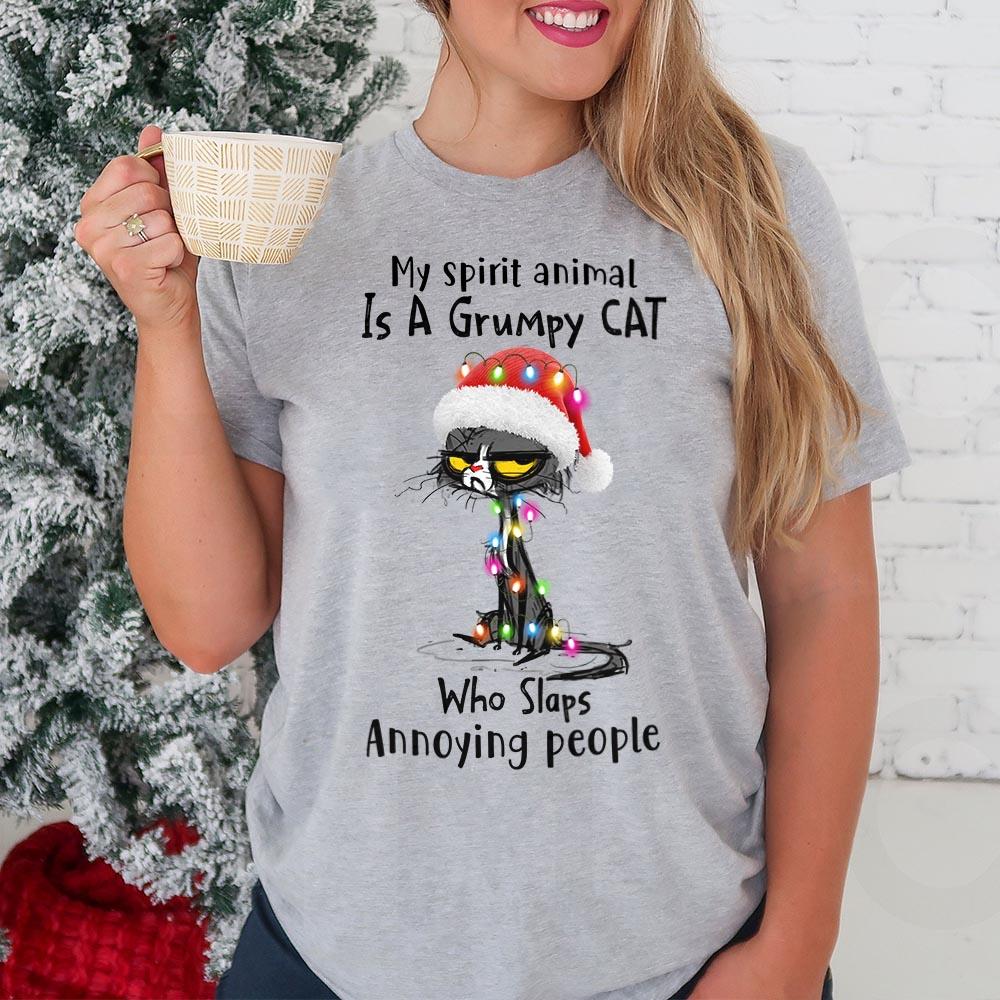 My Spirit Animal Is A Grumpy Cat Who Slaps Annoying People – Cat Christmas T-Shirt