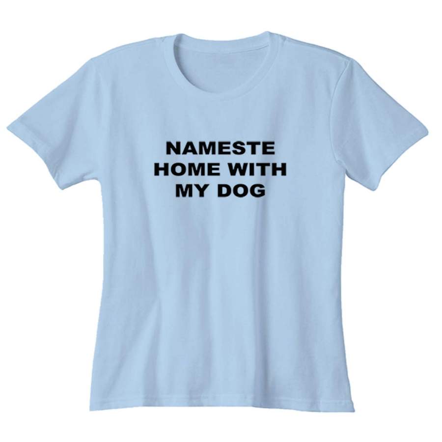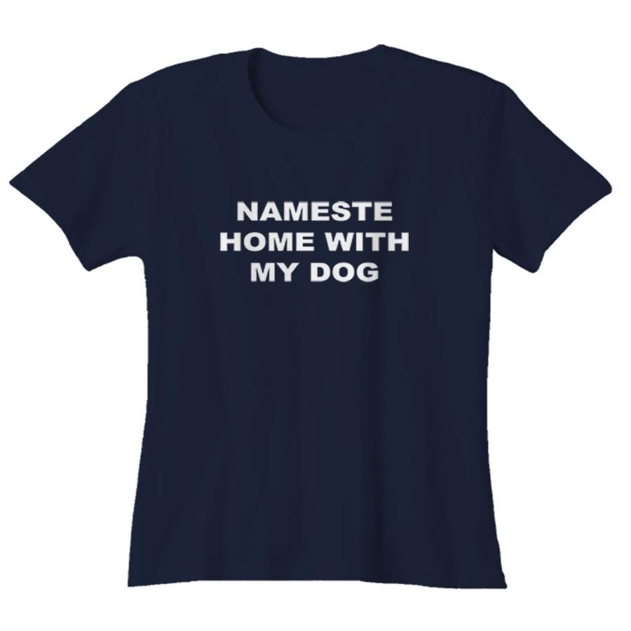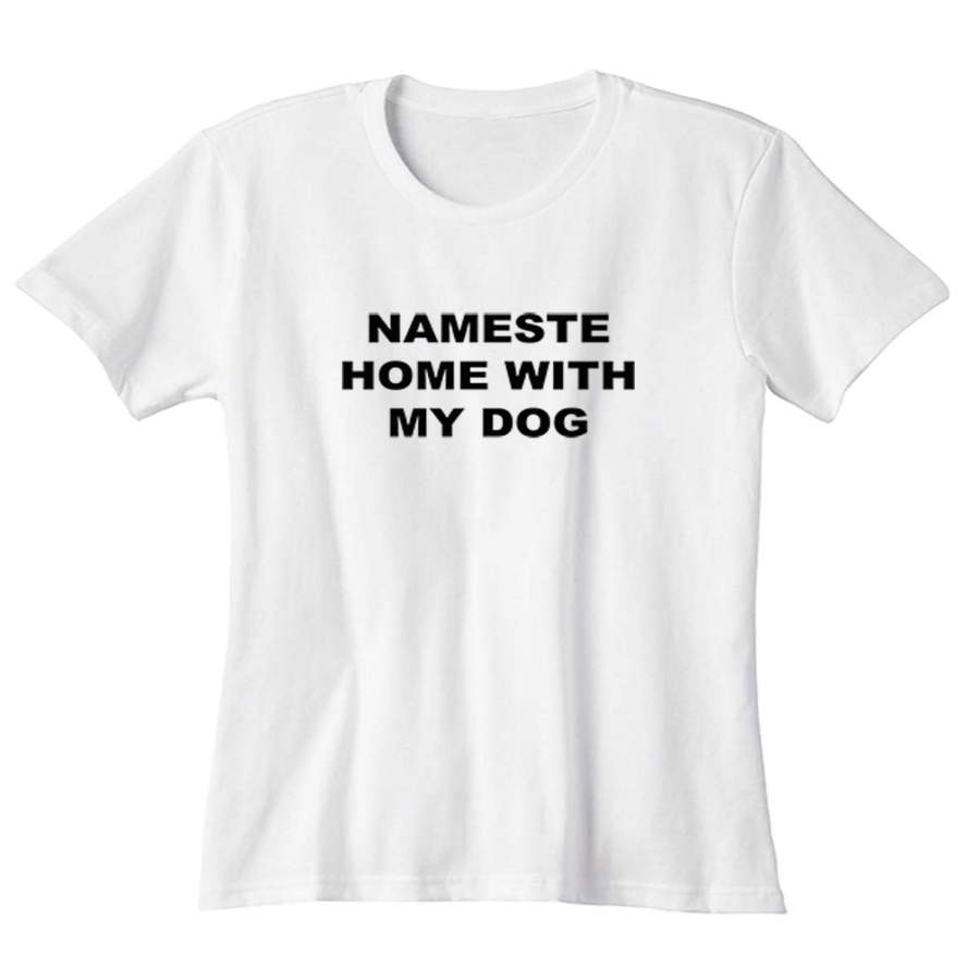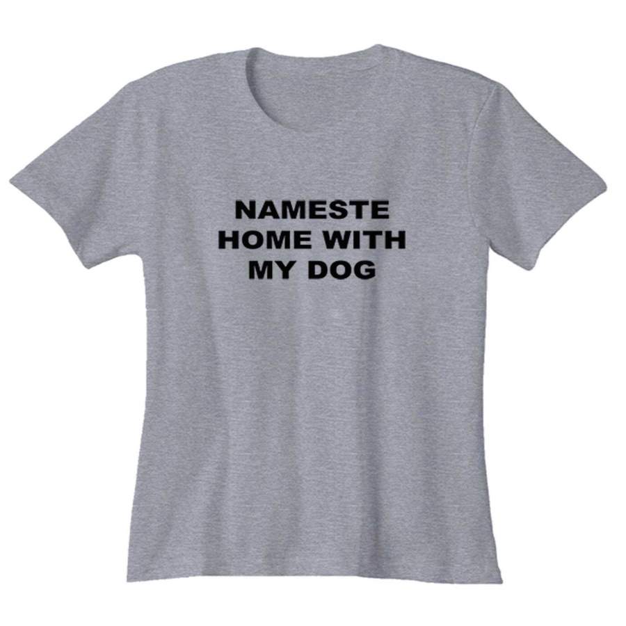 Namaste Home With My Dog Sarcastic Saying Humor Love Animal Woman’s T-Shirt