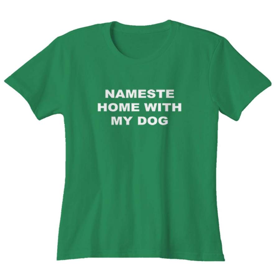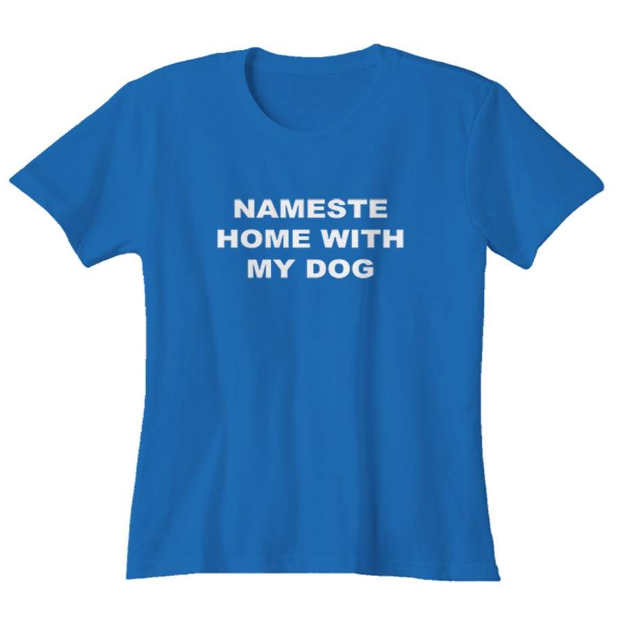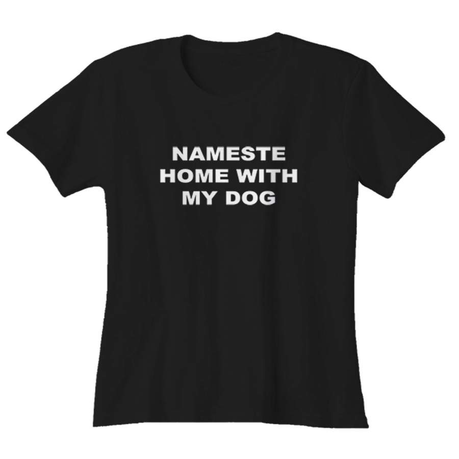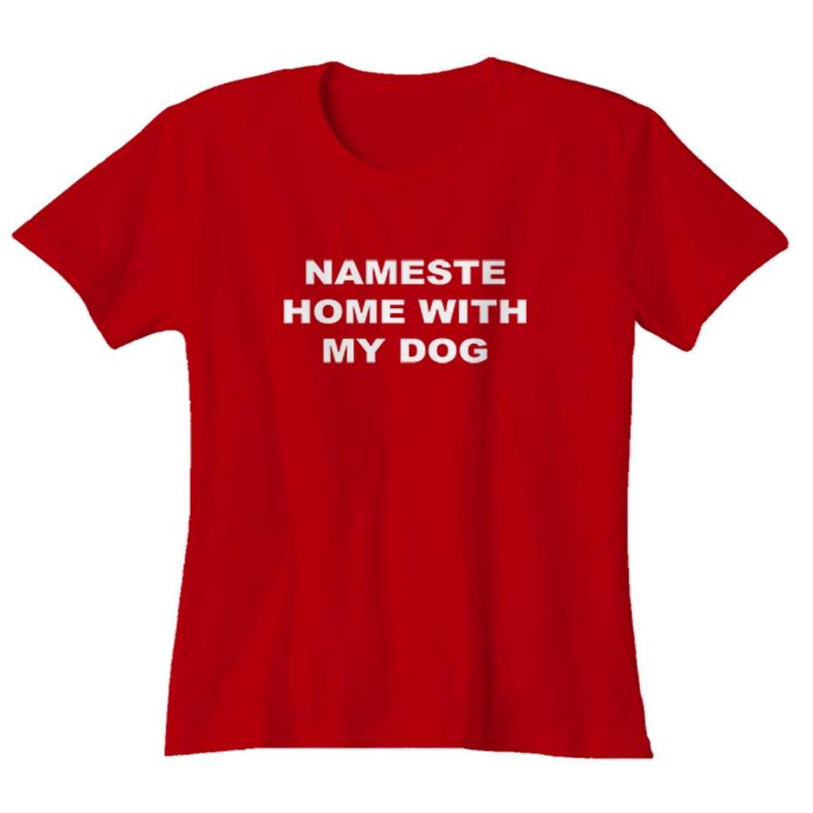 Namaste Home With My Dog Sarcastic Saying Humor Love Animal Woman’s T-Shirt