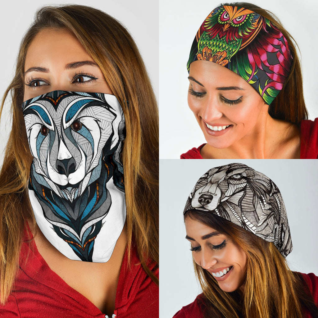 Native American 3D Animal Design Bandana 3 Pack New Lt10