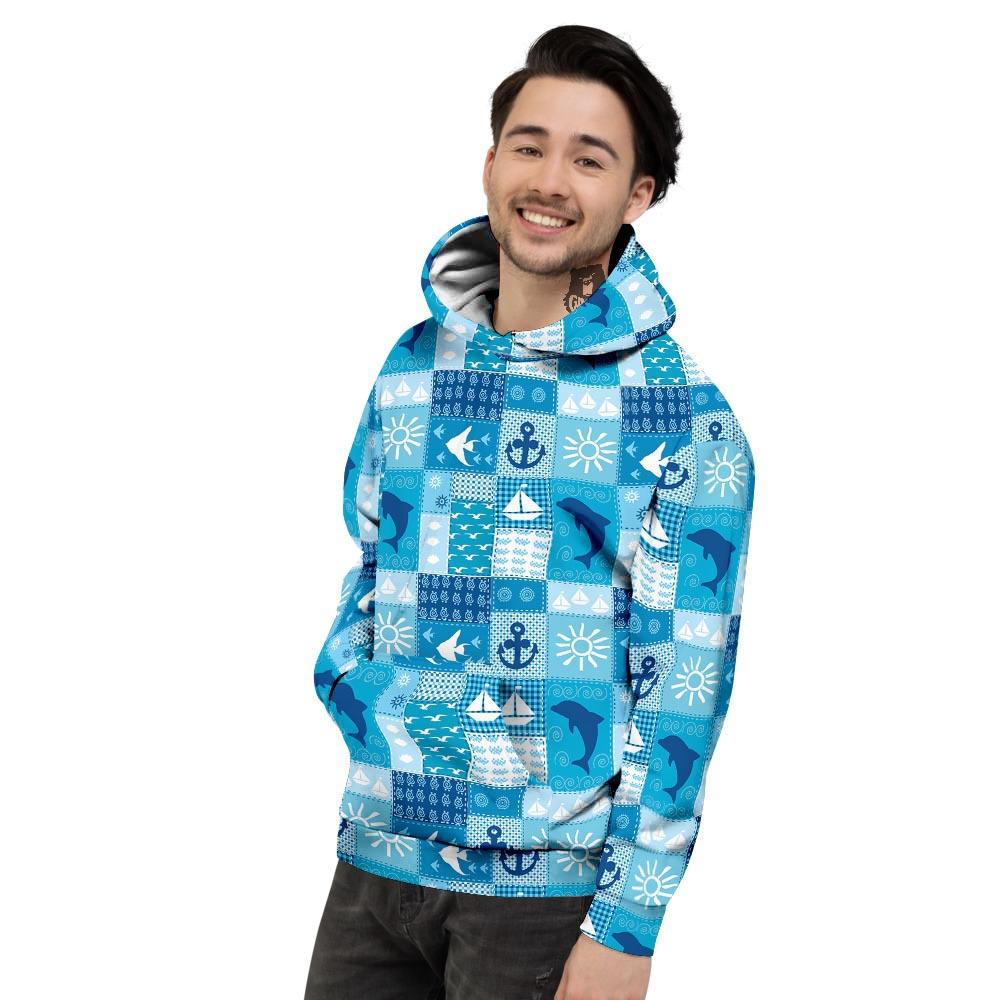 Nautical Sea Animal Patchwork Retro Print Pattern Men’S Hoodie