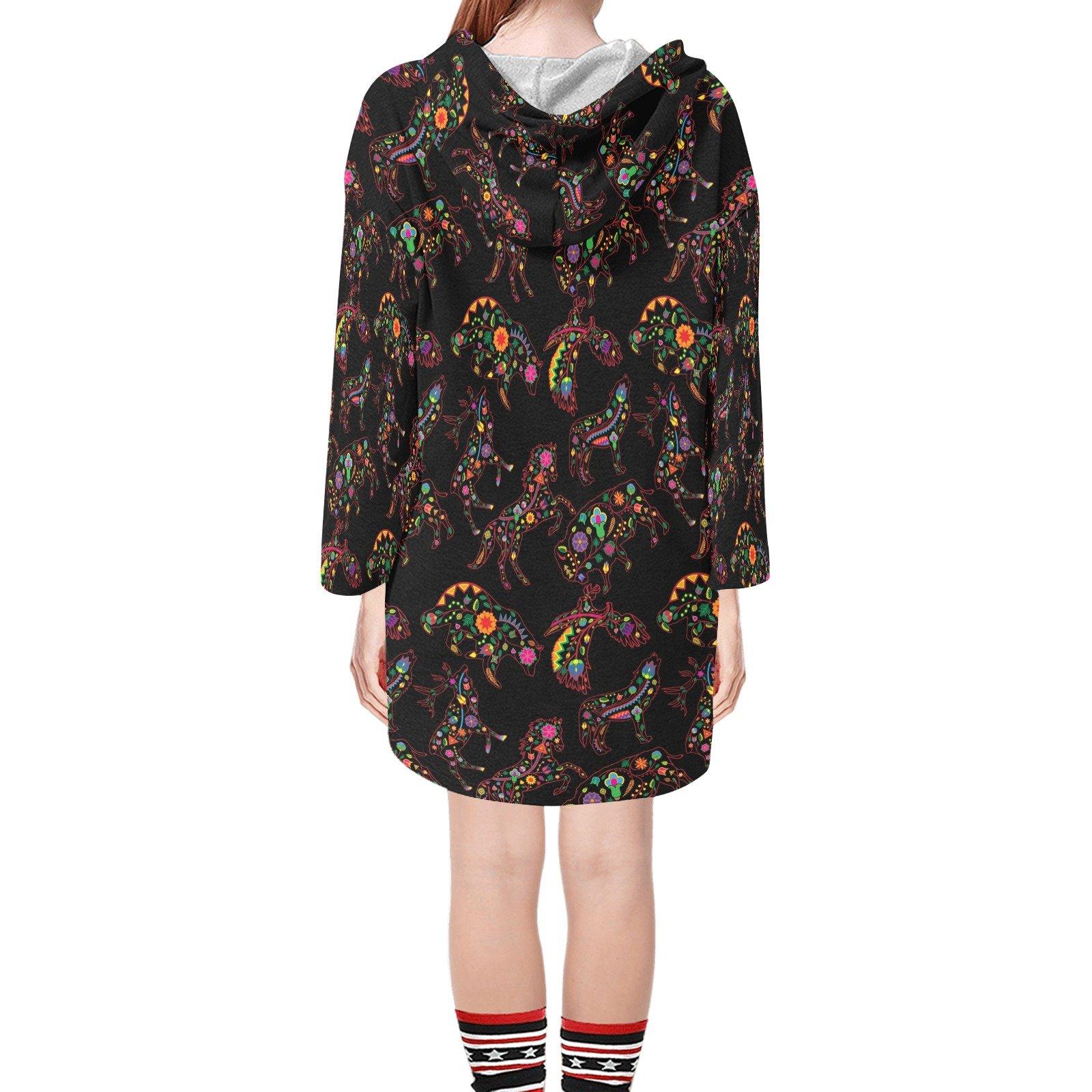 Neon Floral Animals Step Hem Tunic Hoodie For Women (Model H25)