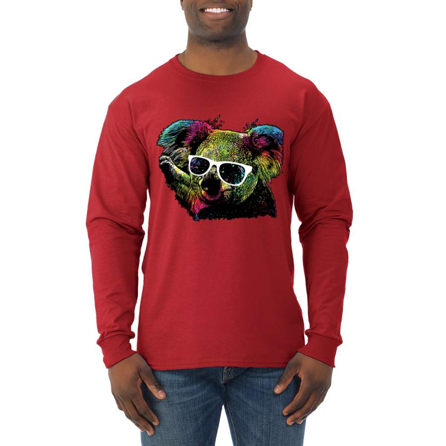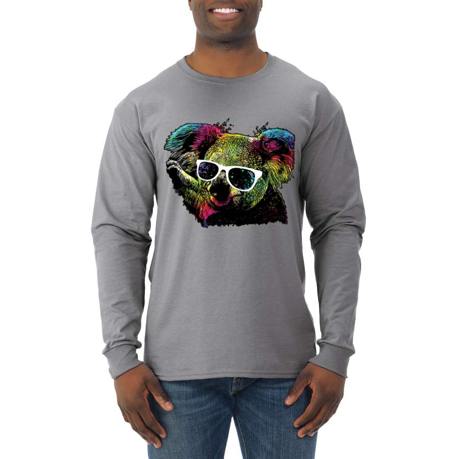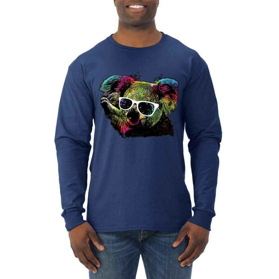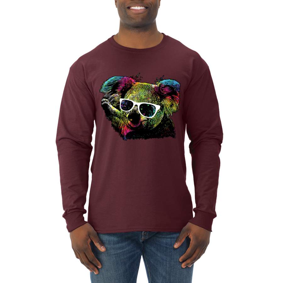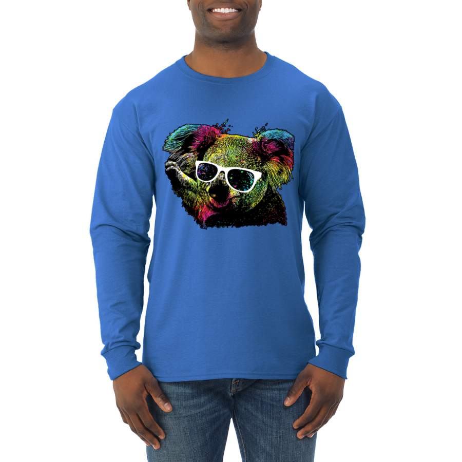 Neon Technicolor Trippy Party Rainbow Koala Animal Lover Mens Long Sleeve Shirt
