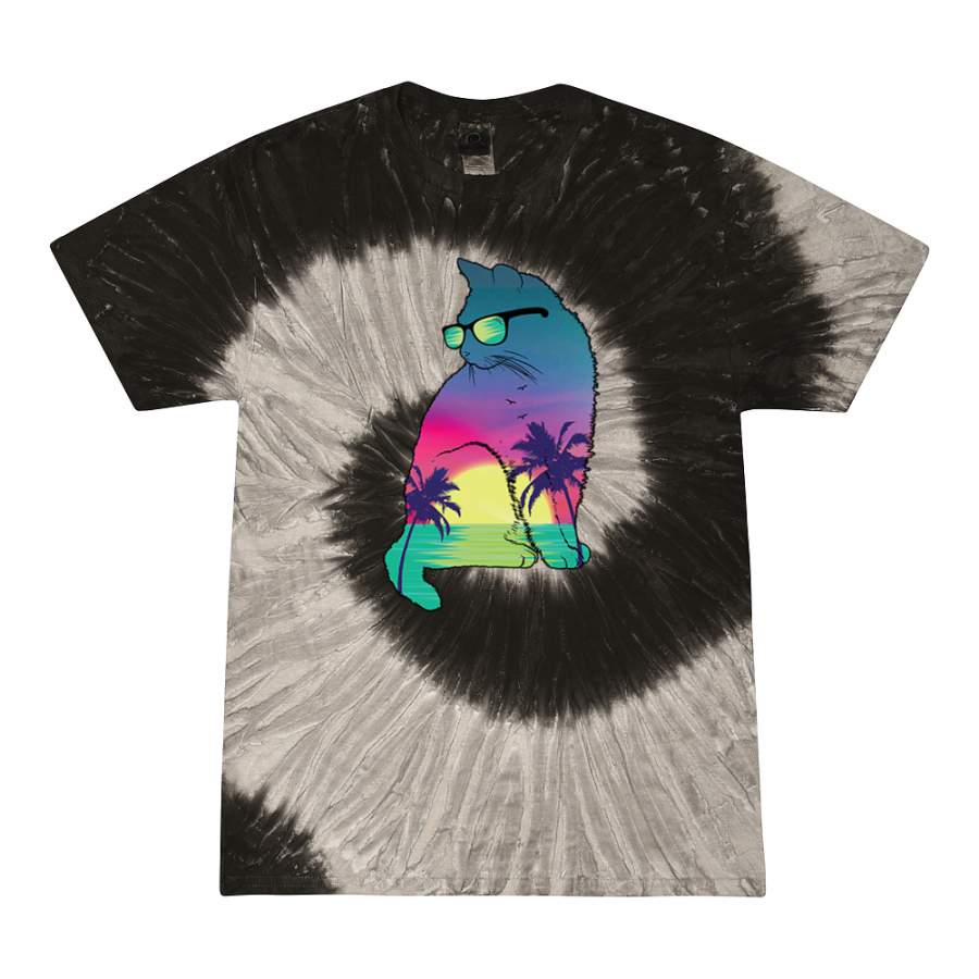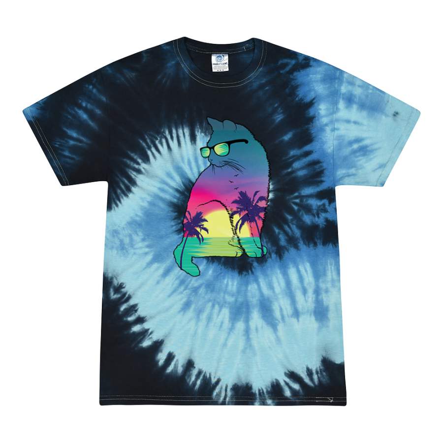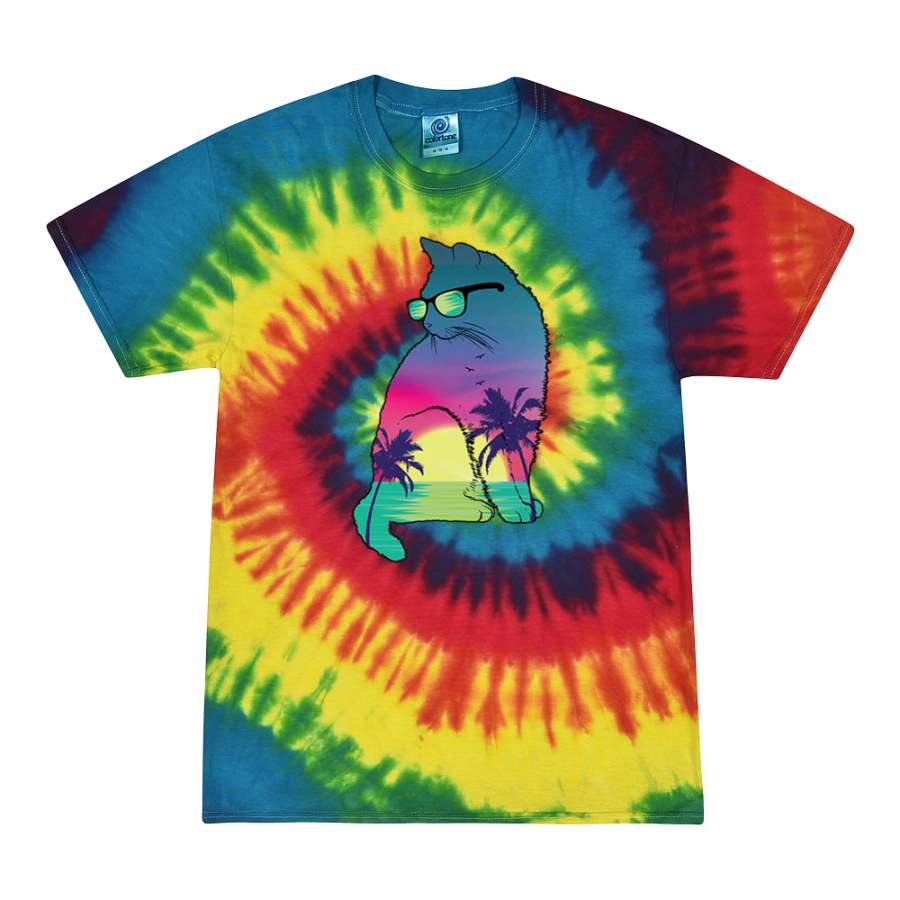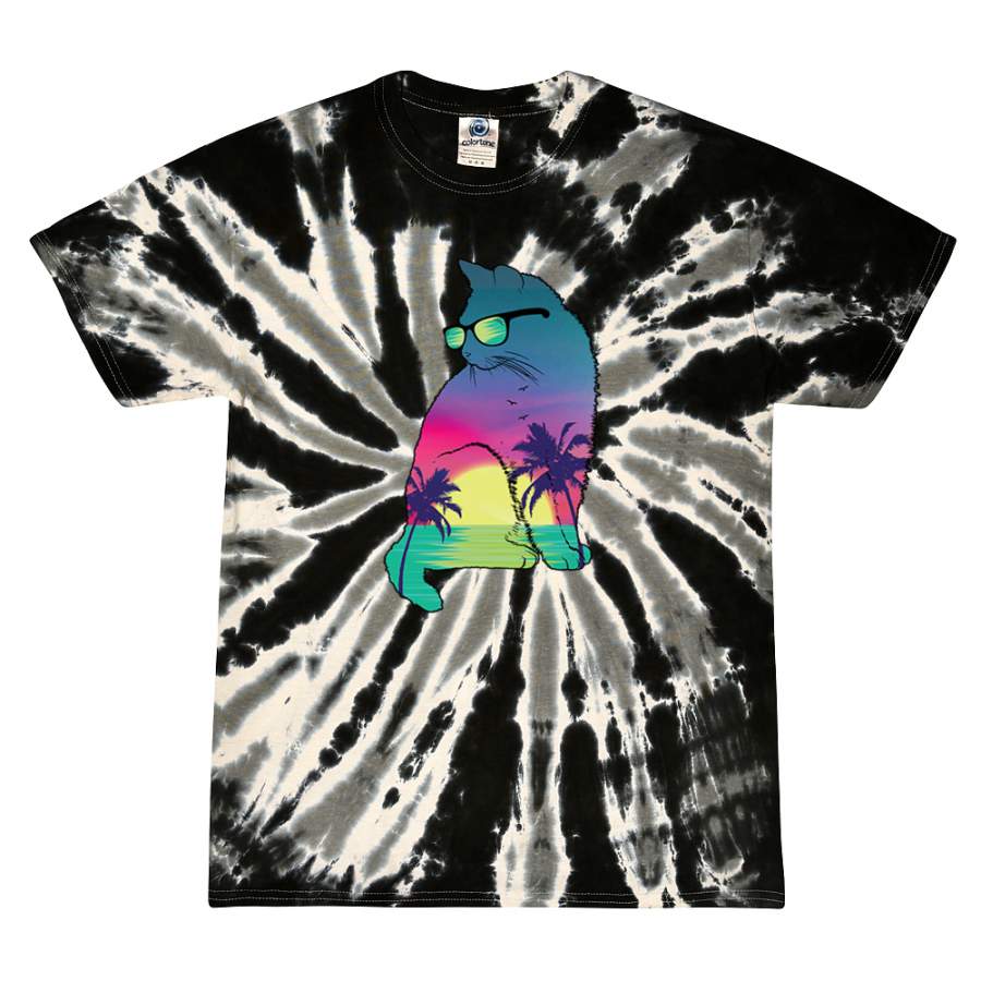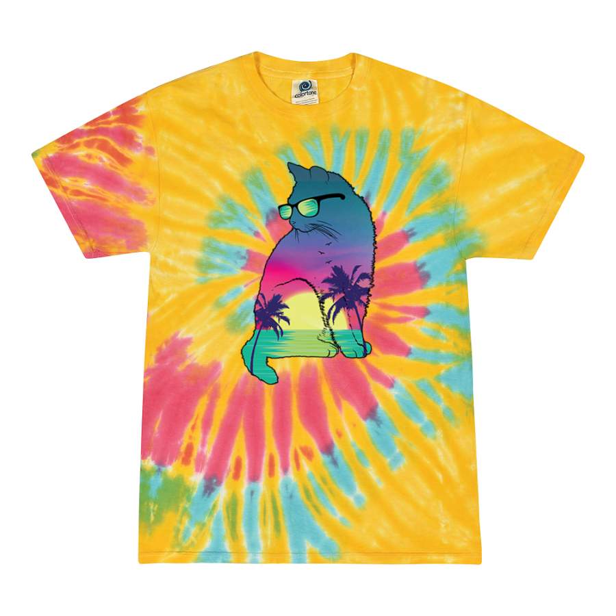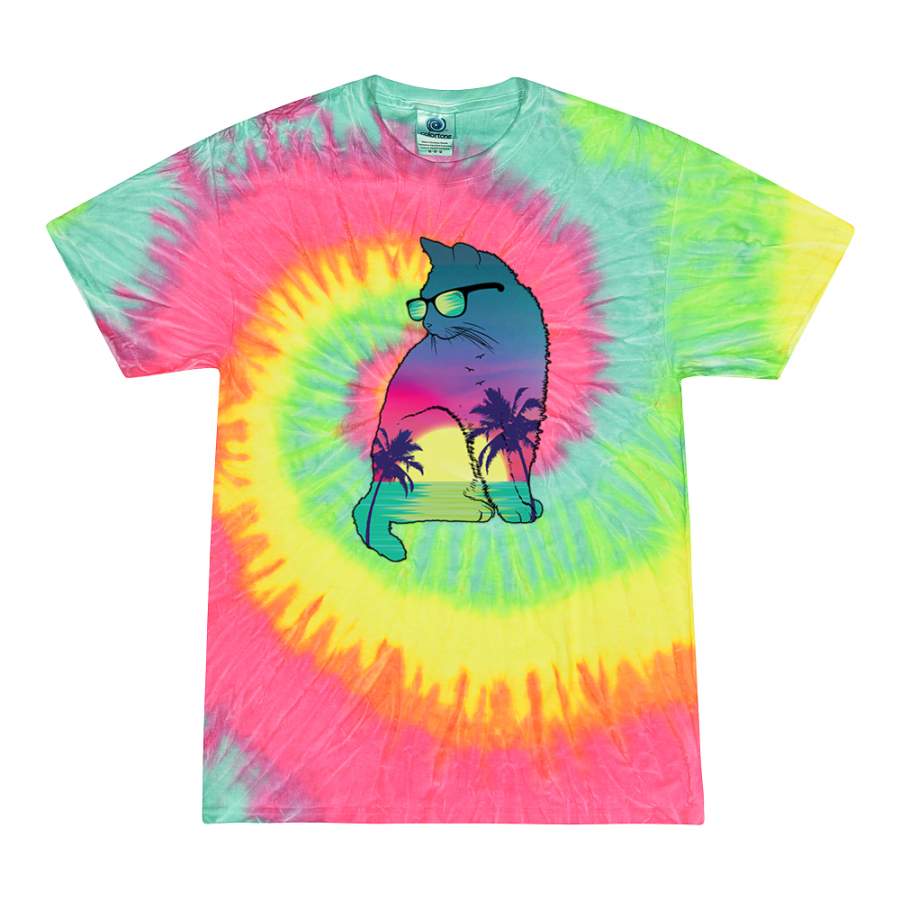 Neon Tie Dye Beach Sunset Cat California Vibes Animal Lover Tie-Dye T-Shirt