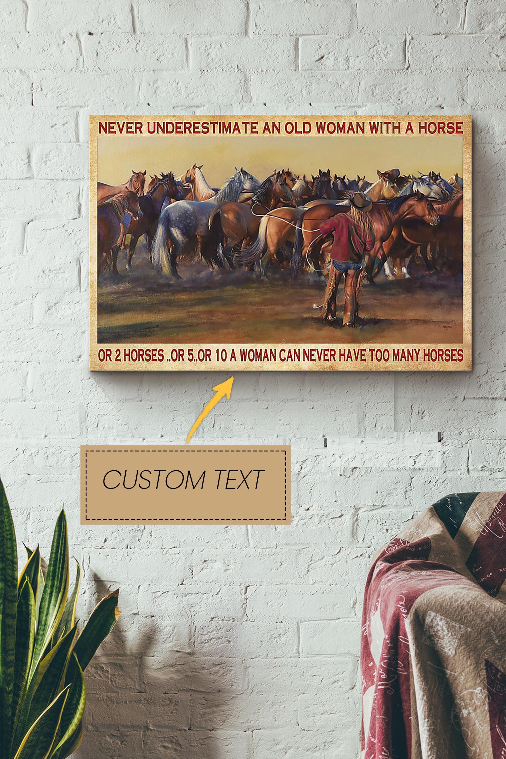 Never Underestimate An Old Cowgirl Poster – Animal Wall Art – Gift For Horse Lover Horse Rider Farmhouse Decor Horseback Rider Wrapped Canvas