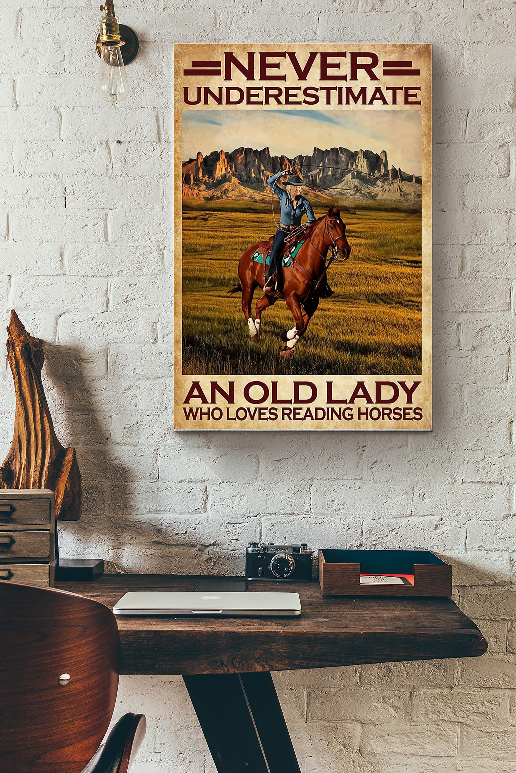 Never Underestimate Old Lady Cowgirl Poster – Animal Wall Art – Gift For Horse Lover Horse Rider Cowgirl Farmhouse Decor Horseback Rider Wrapped Canvas