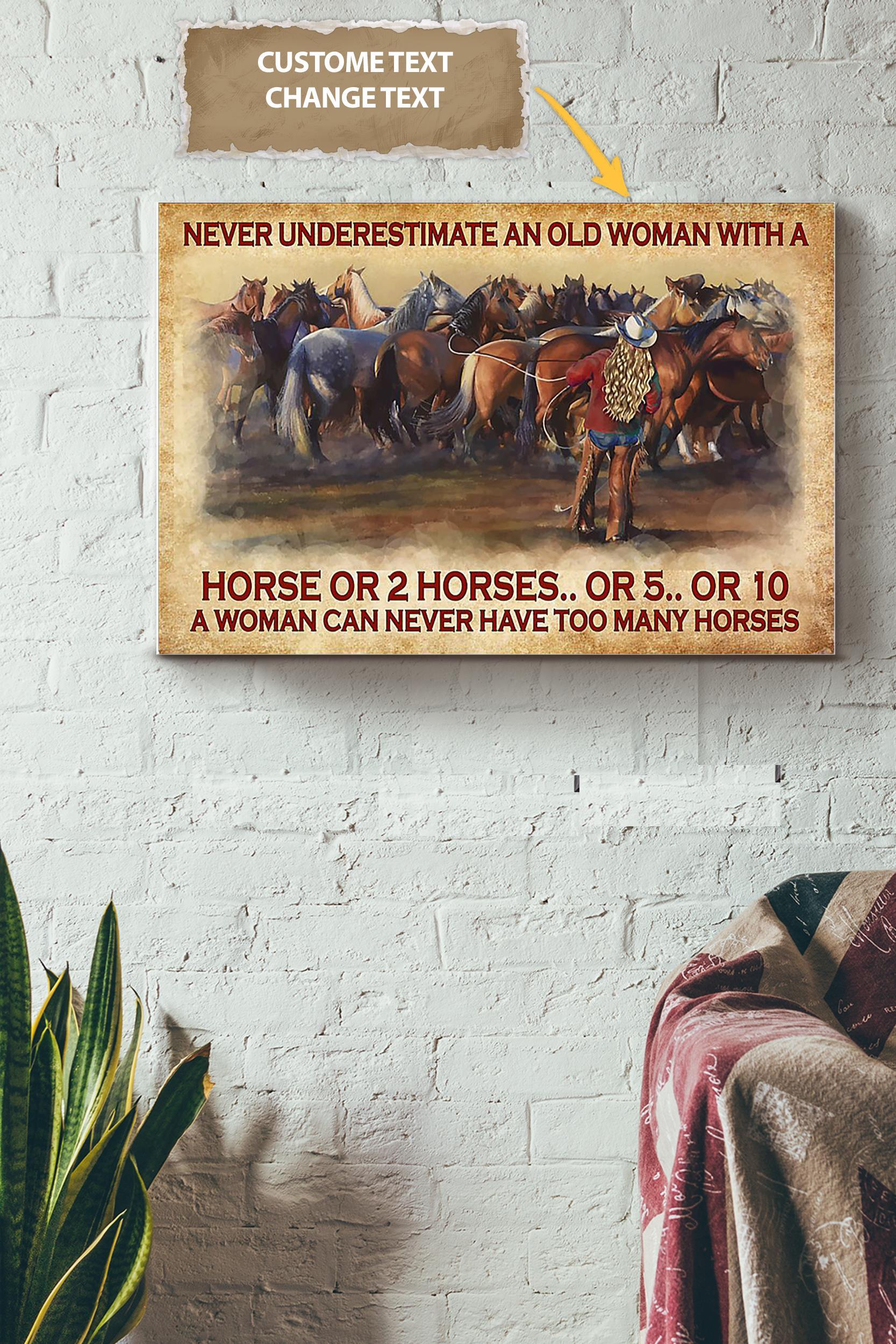 Never Undrestimate Old Woman Have Many Horses Poster Poster – Animal Wall Art – Gift For Horse Lover Horse Rider Horseback Rider Poster