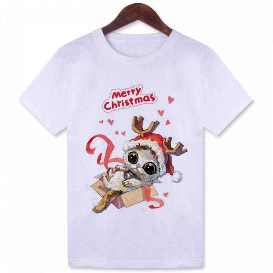 New 2016 Cute Animal Christmas Cat Tops Women White Casual Tees Tumblr Kwaii Cartoon T Shirt