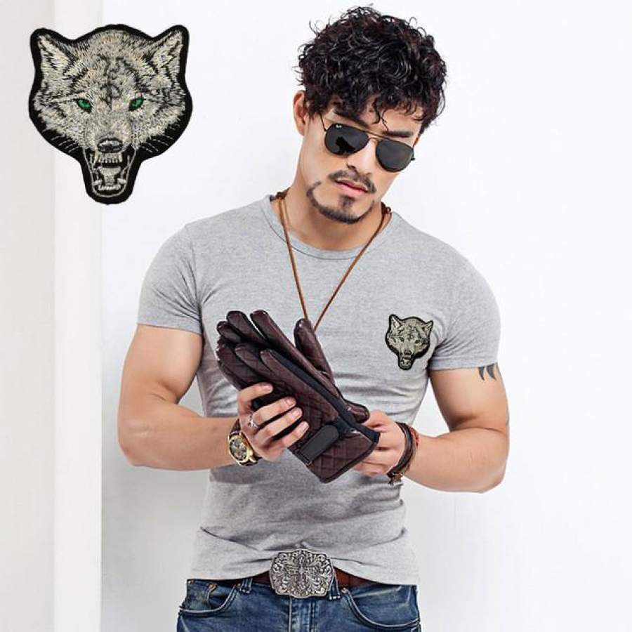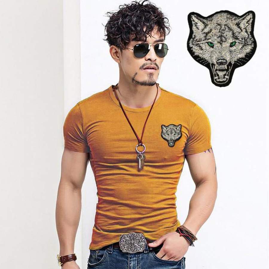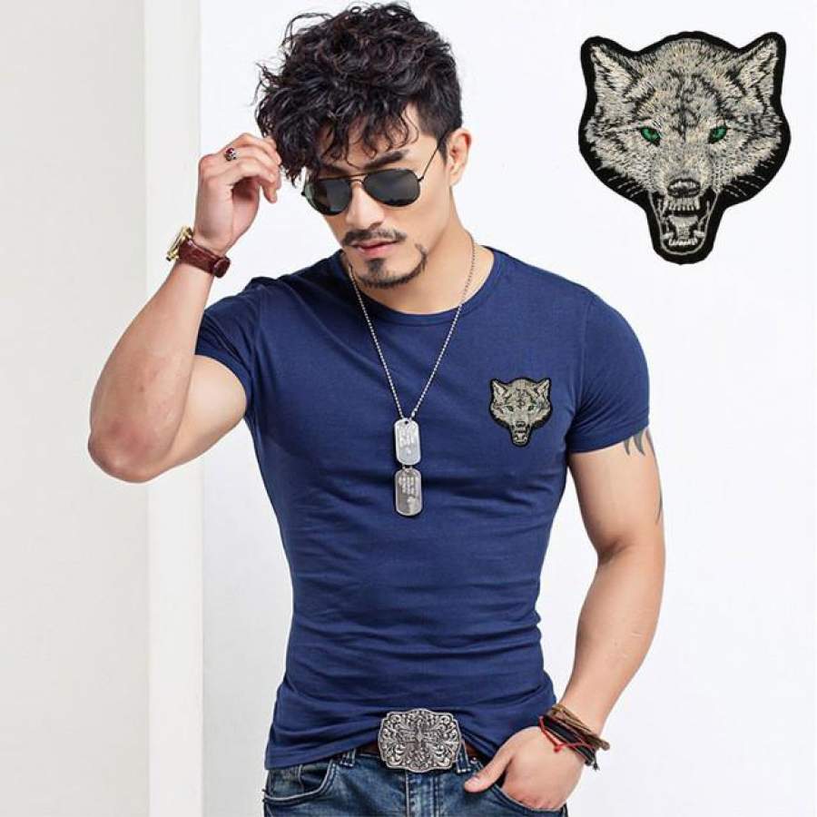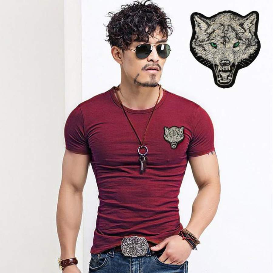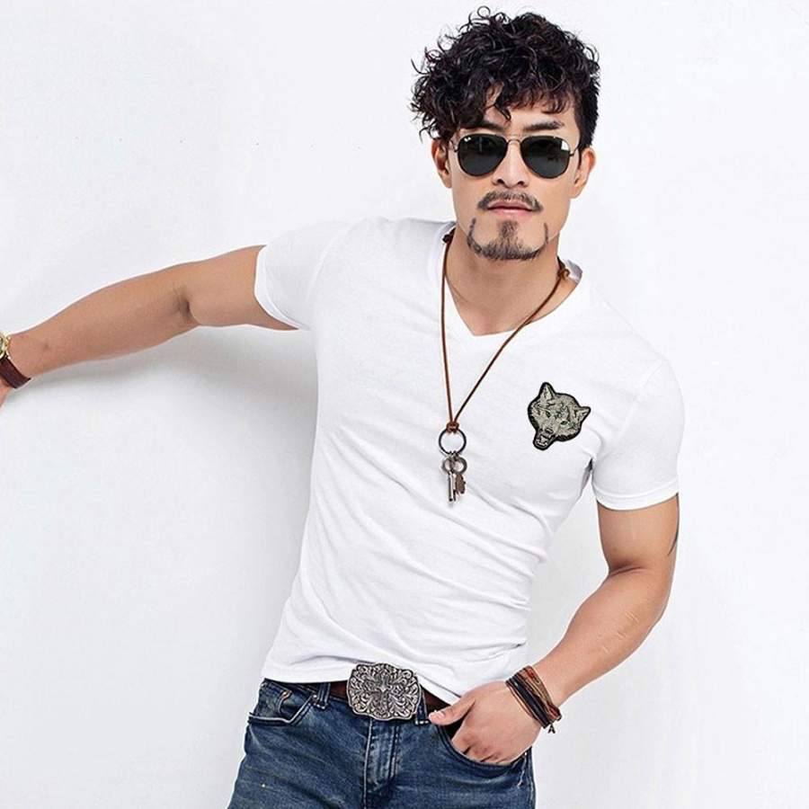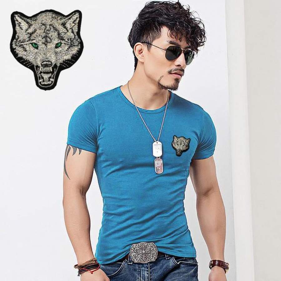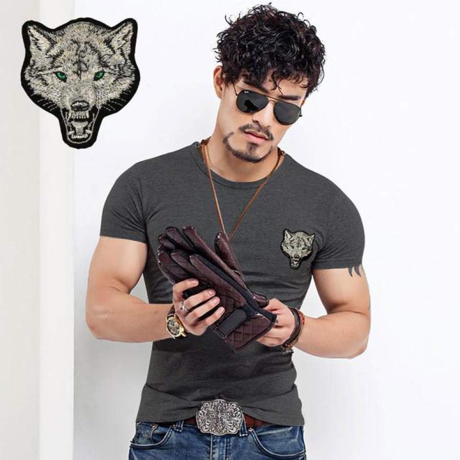 New Casual Men’s Wolf T-shirts V Neck Short Sleeve Cotton embroidery Animal T shirt Men Tee Shirts