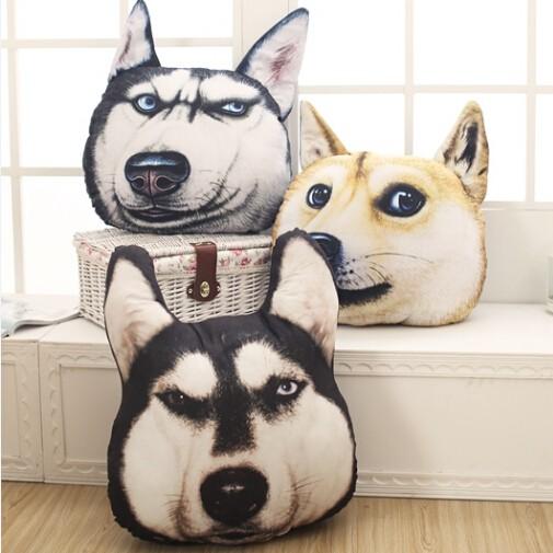 New Hot 3D 38cm*35cm Samoyed Husky Dog Plush Toys Dolls Stuffed Animal Pillows