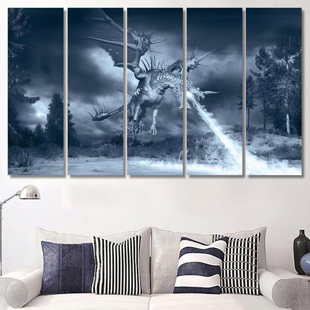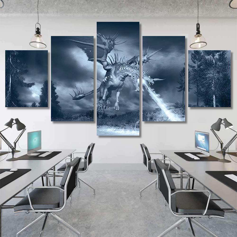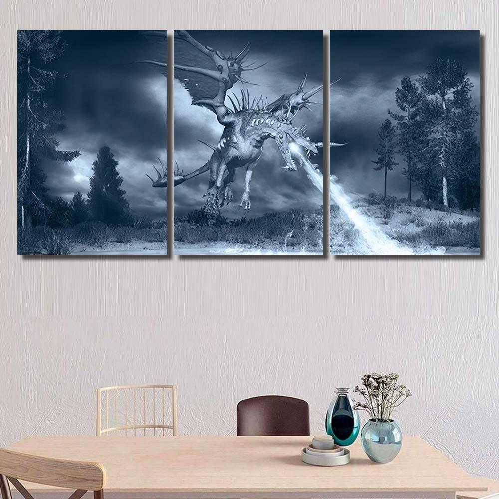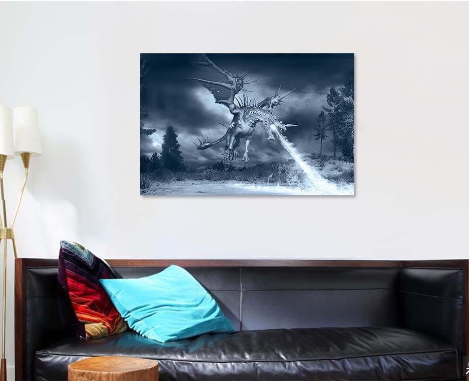 Night Scene Dragon Trees River 3D – Dragon Animals Canvas Print