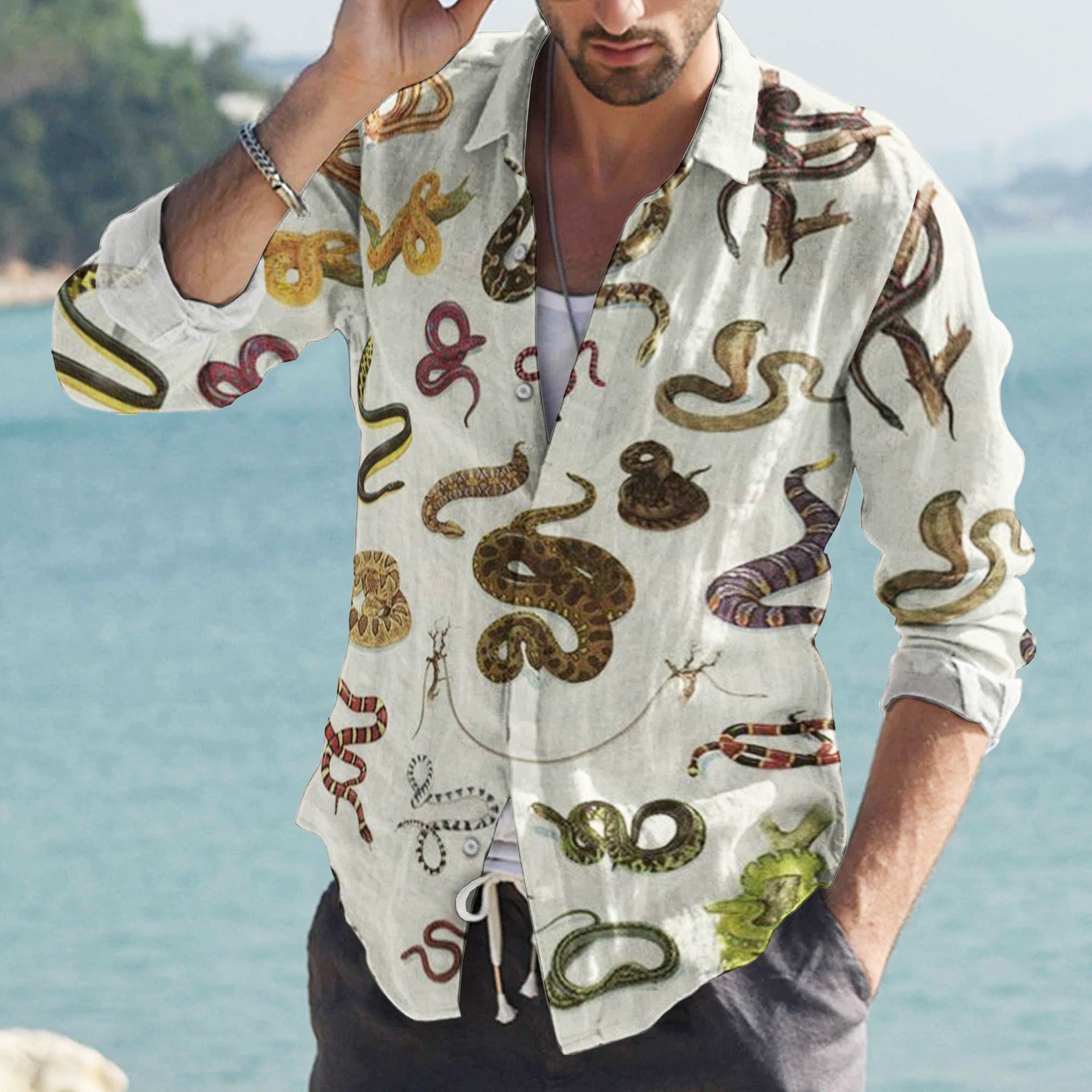Nocturnal Animals Cotton And Linen Casual Shirt, Snakes Linen Shirt