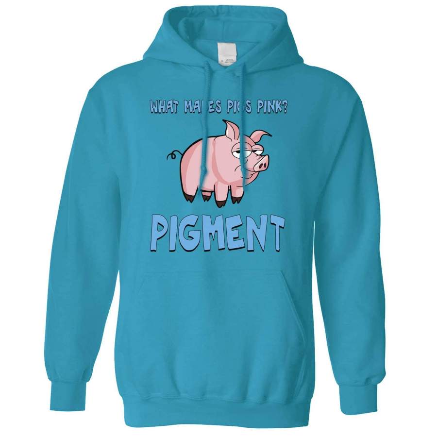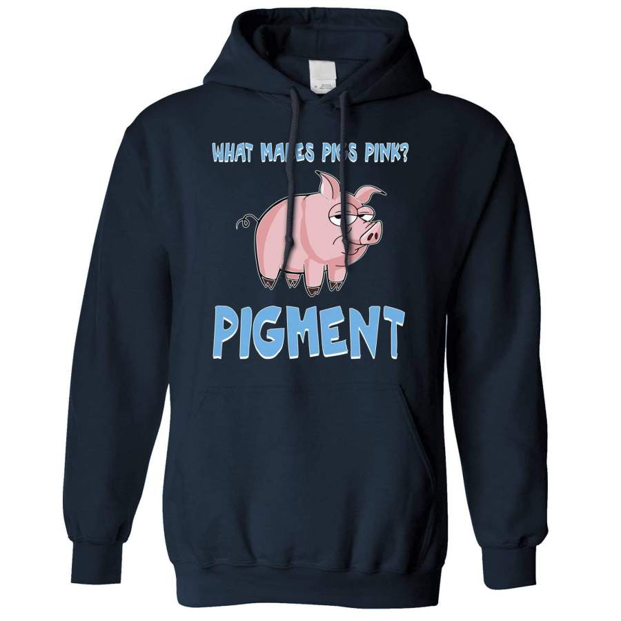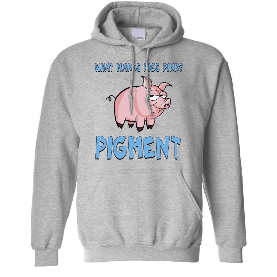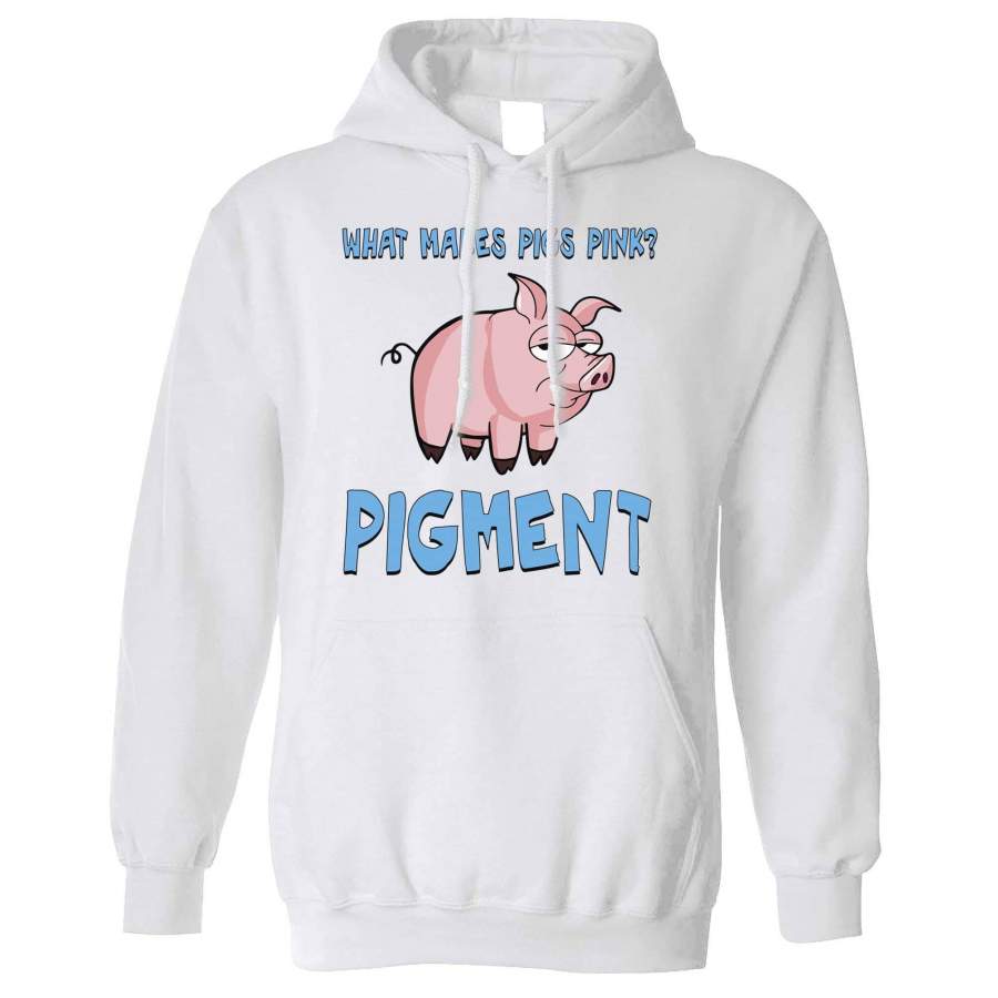 Novelty Animal Hoodie What Makes Pigs Pink? Pigment! Hooded Jumper