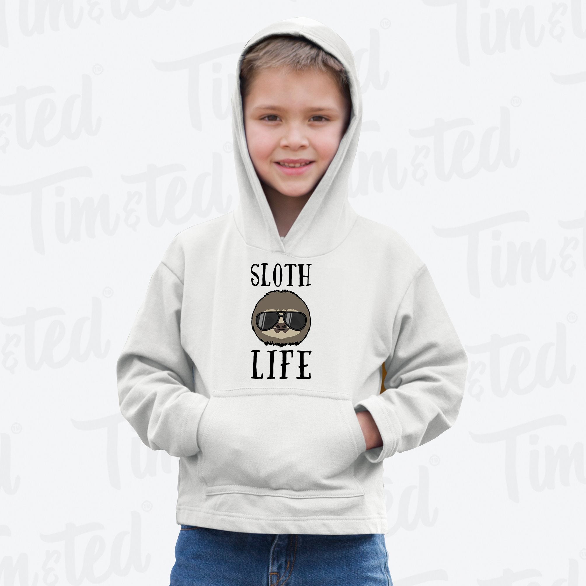 Novelty Animal Kids Hoodie Sloth Life Pun Slogan Childs