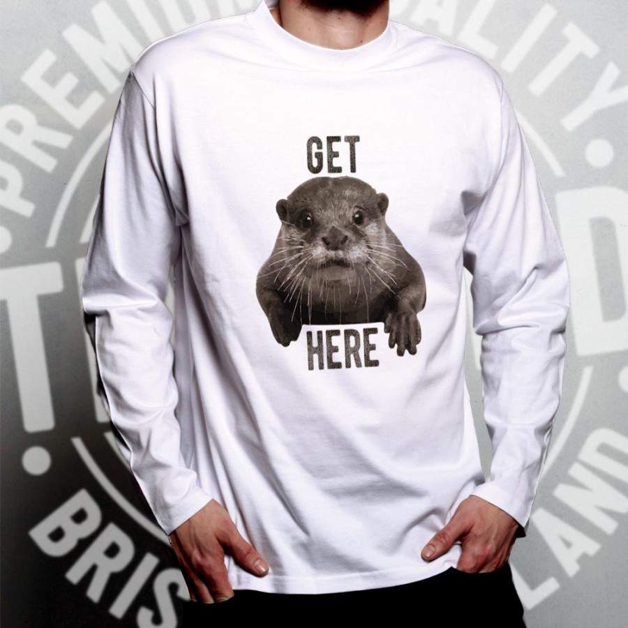 Novelty Animal Long Sleeve Get Otter Here Pun T-Shirt