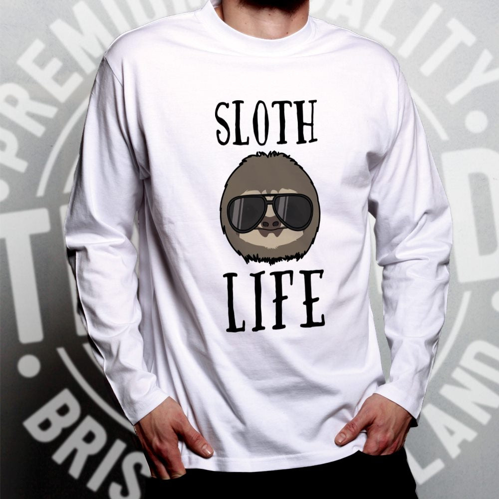 Novelty Animal Long Sleeve Sloth Life Pun Slogan T-Shirt