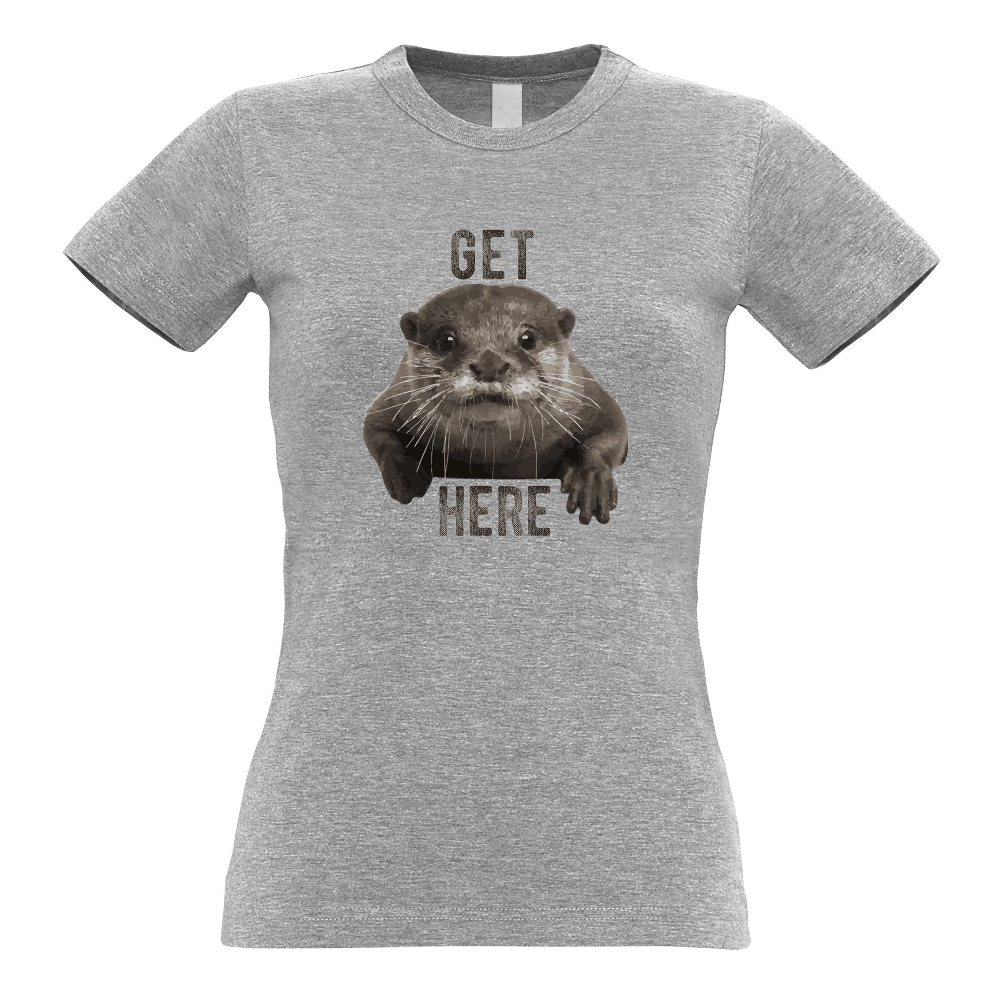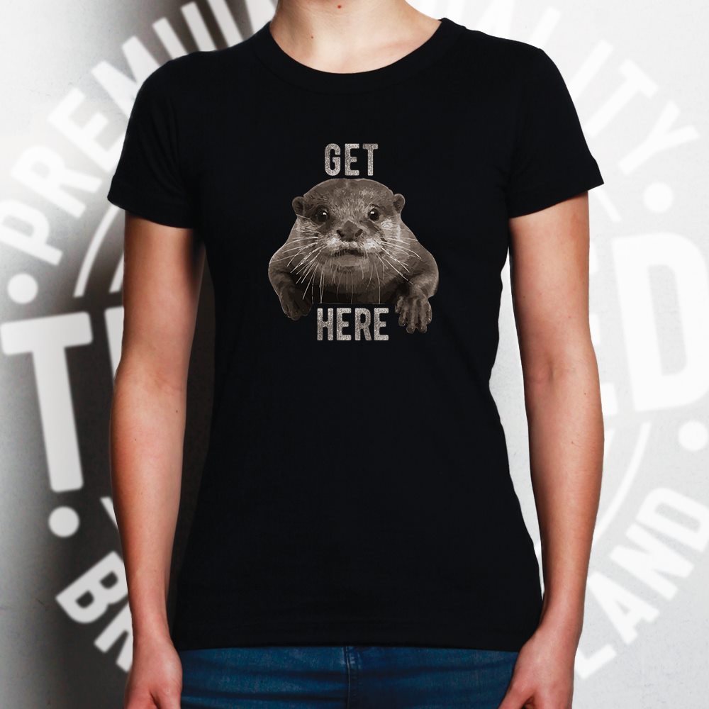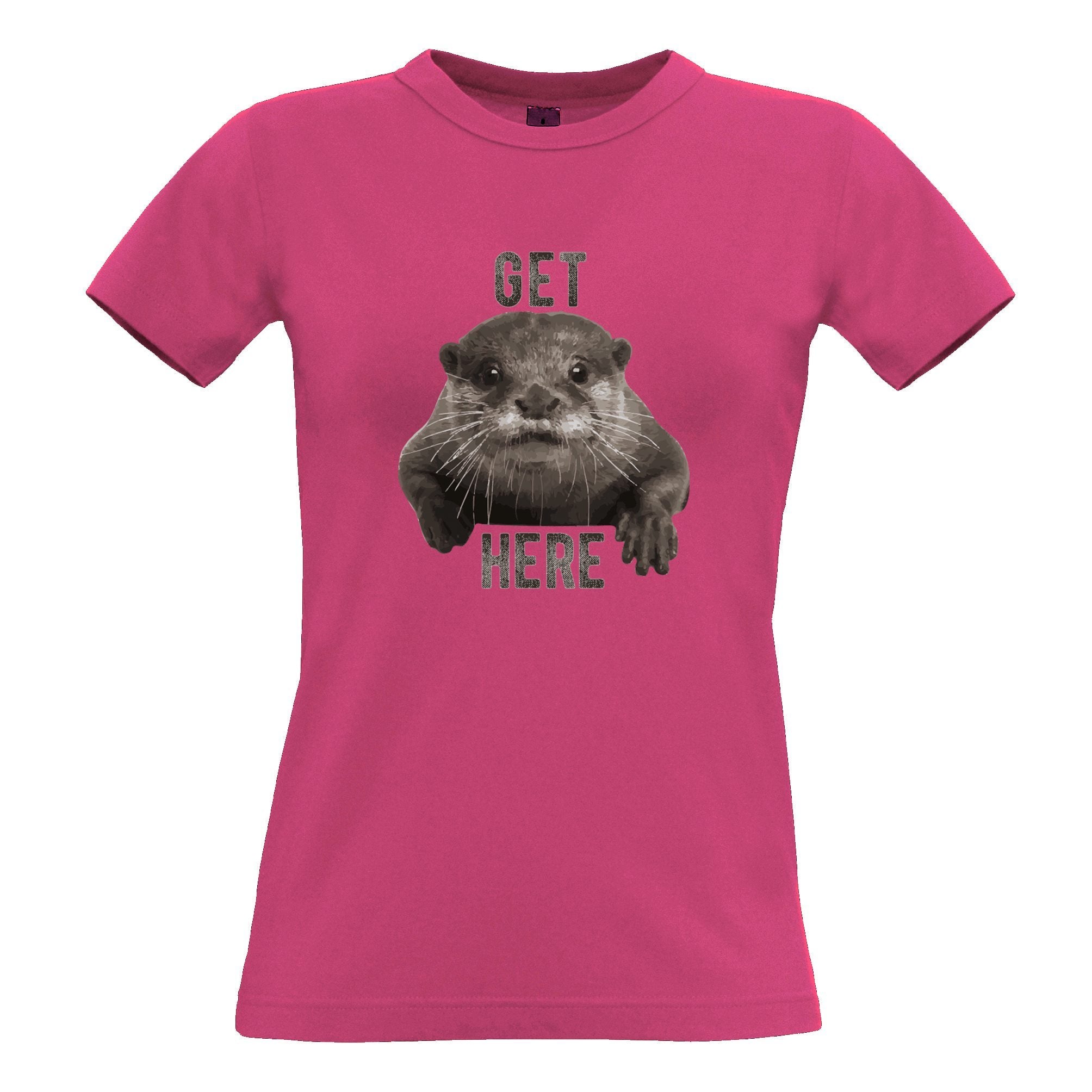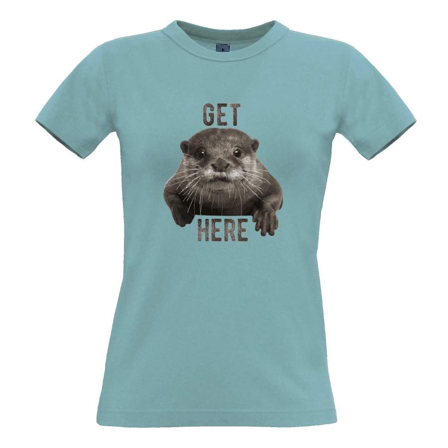 Novelty Animal Womens TShirt Get Otter Here Pun