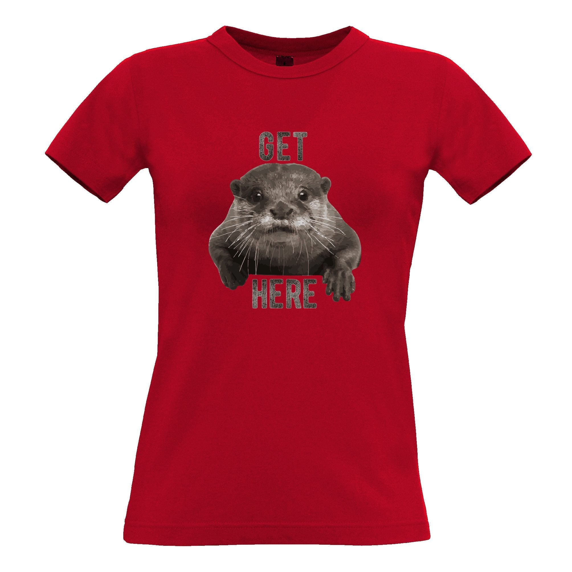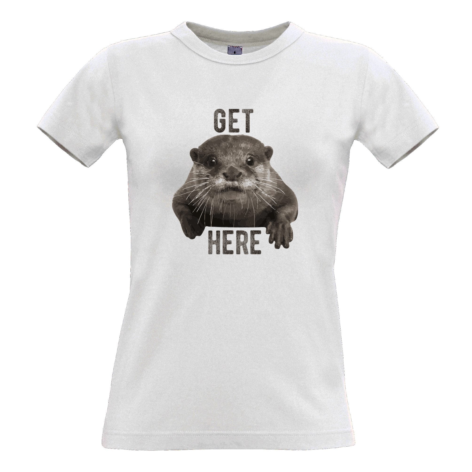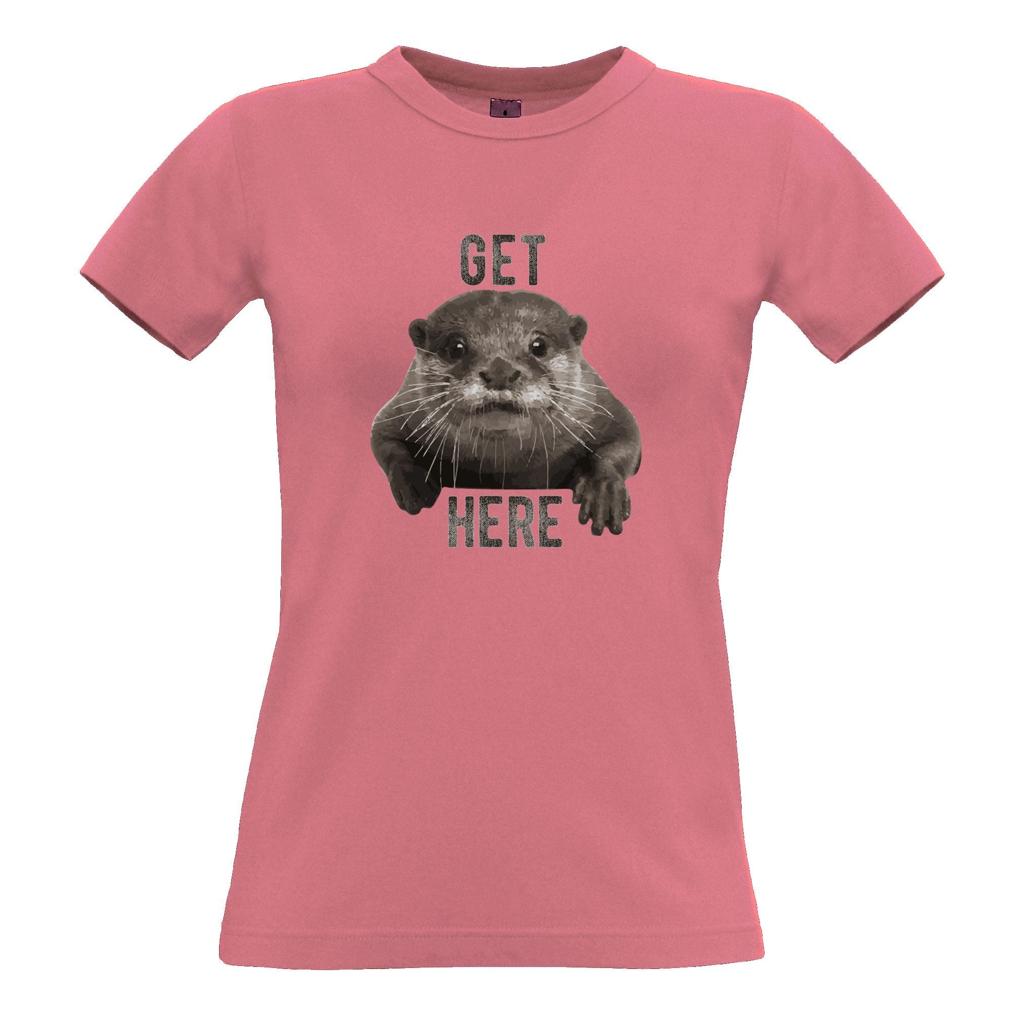 Novelty Animal Womens TShirt Get Otter Here Pun