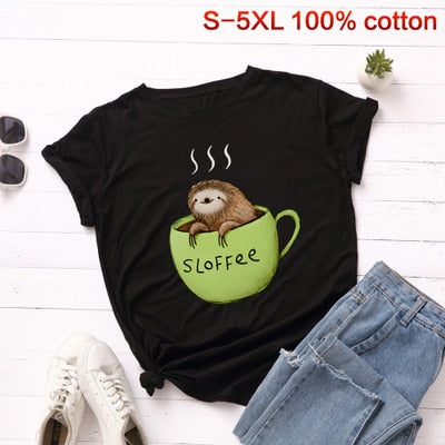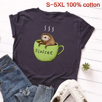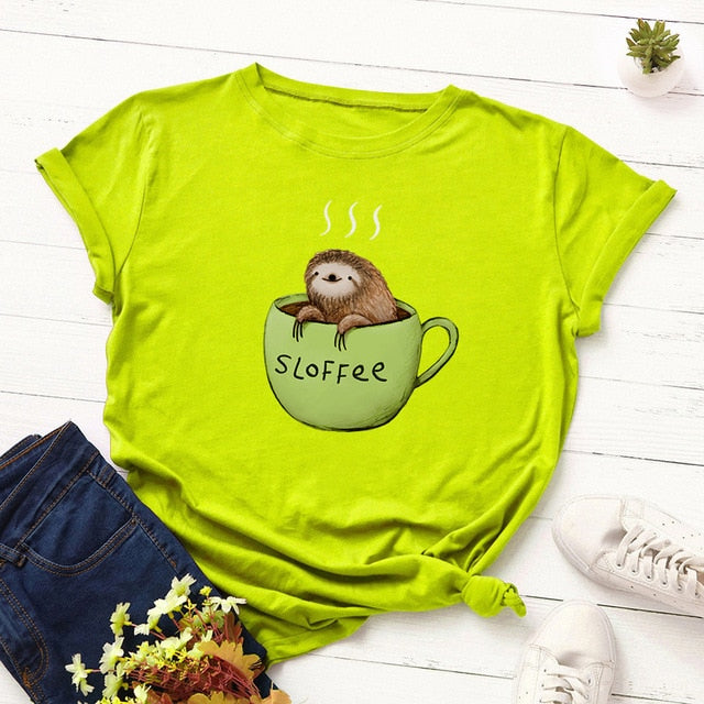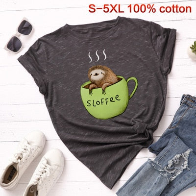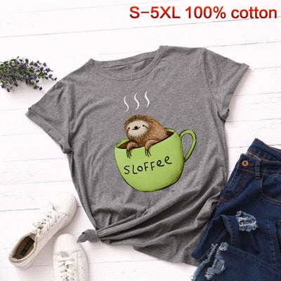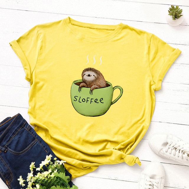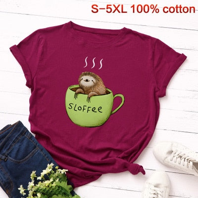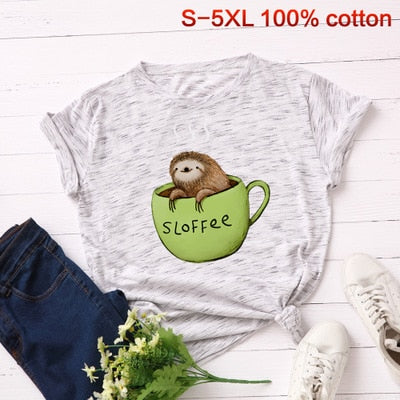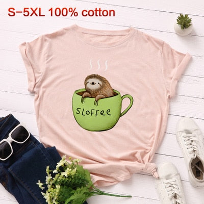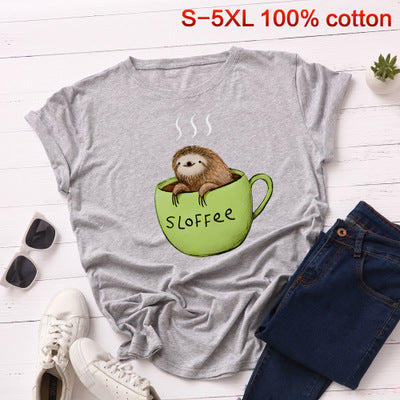 O Neck Short Sleeves Cartoon Soft Animal Female T Shirt