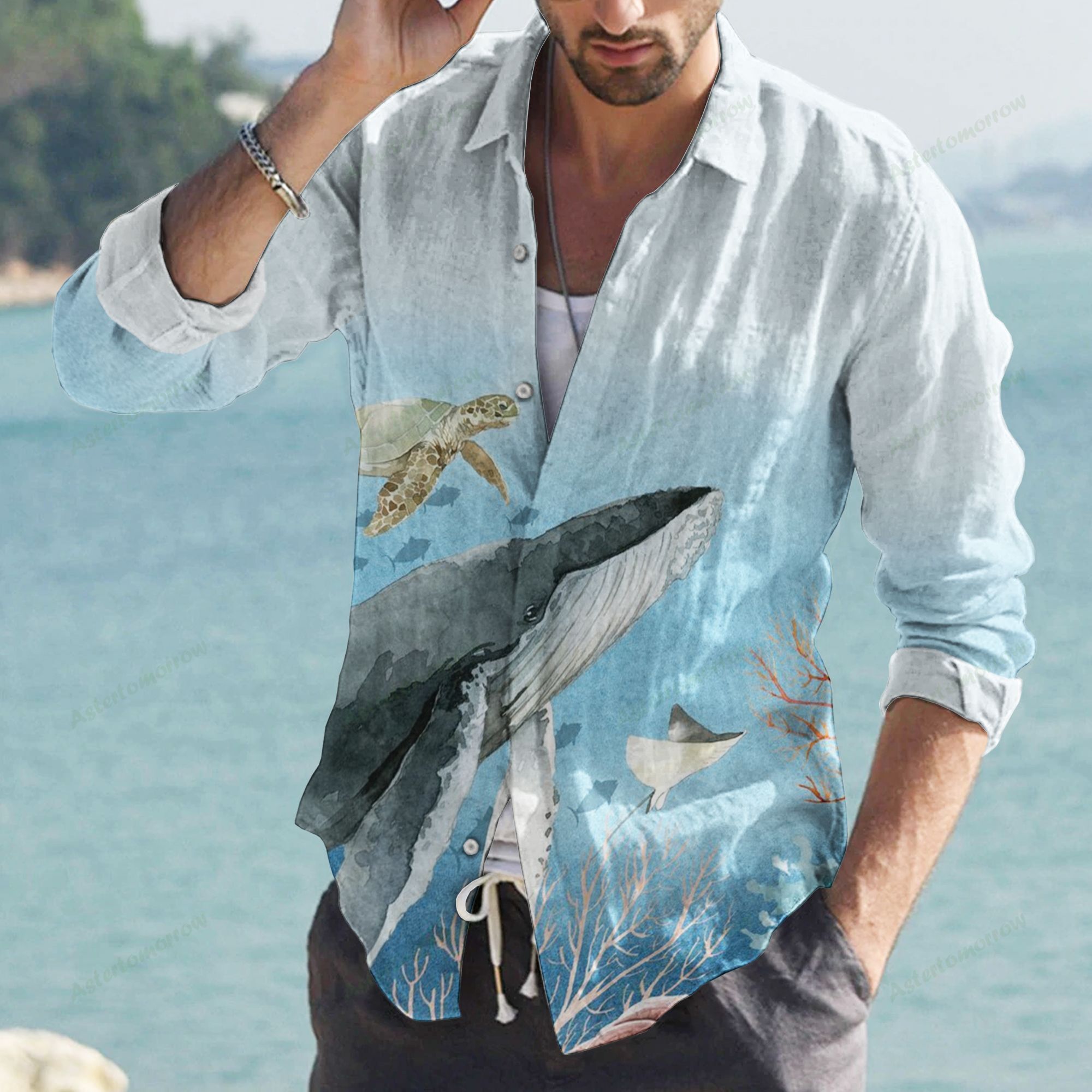 Ocean Animals Cotton And Linen Casual Shirt, Sea Life Linen Shirt