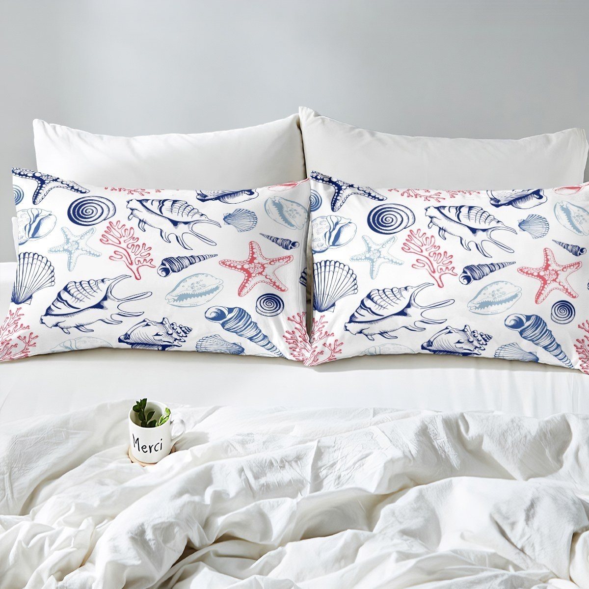 Ocean Theme Bedding Set Kids Boys Girls Conch Shell Starfish Comforter Cover Marine Ocean Creature Duvet Cover Sea Animal Print Quilt Cover,Room Decor 2/3Pcs Bedding