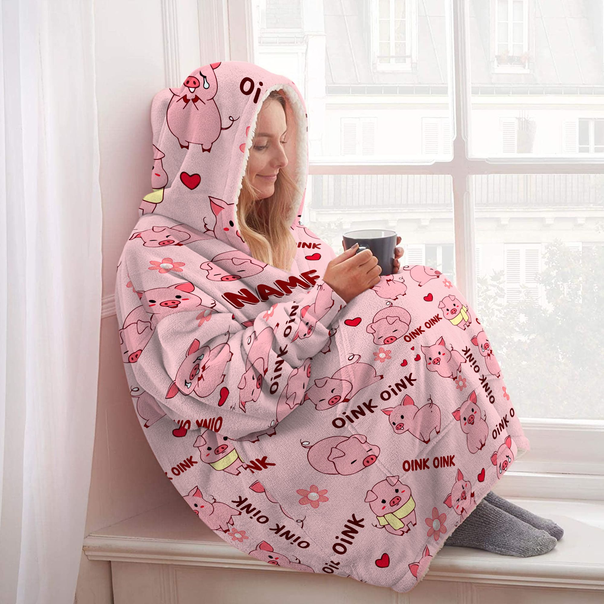 Oink Oink Cute Little Pig Custom Name Huggle Hoodie For Animal Lovers In Winter And Daily Life