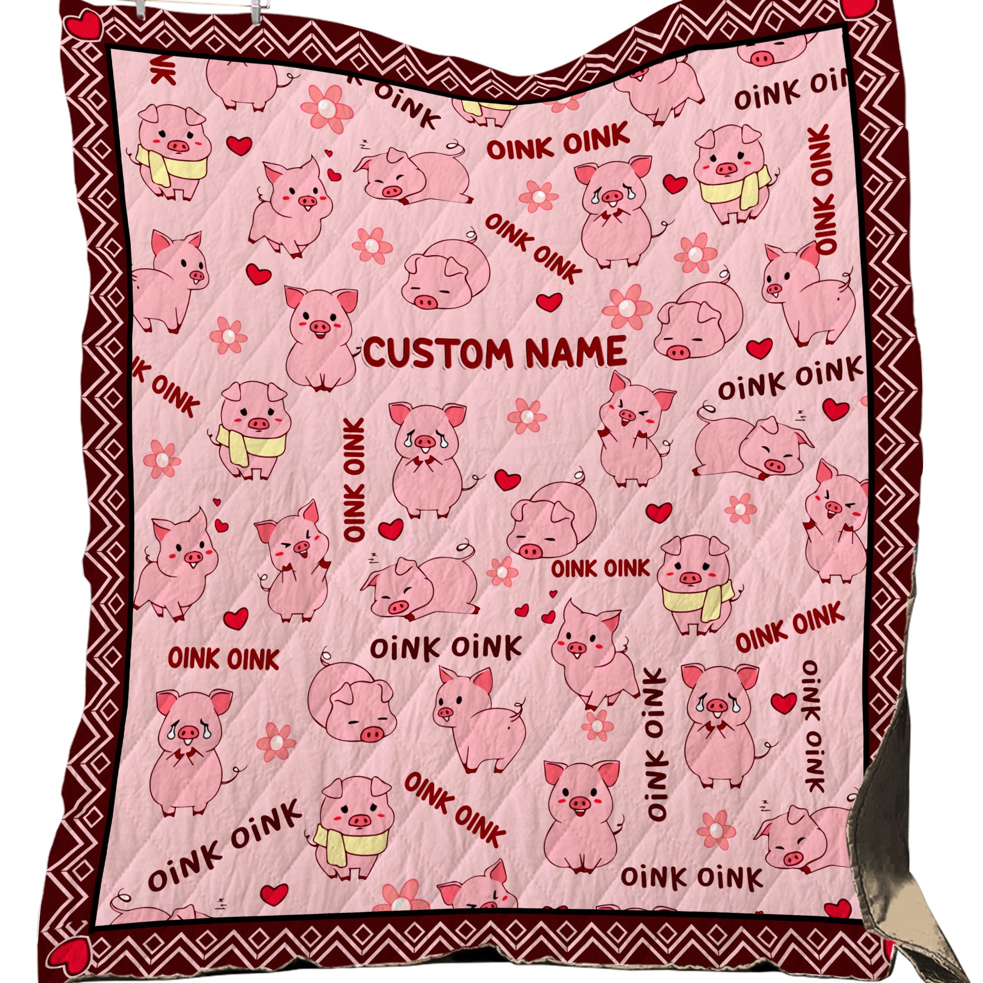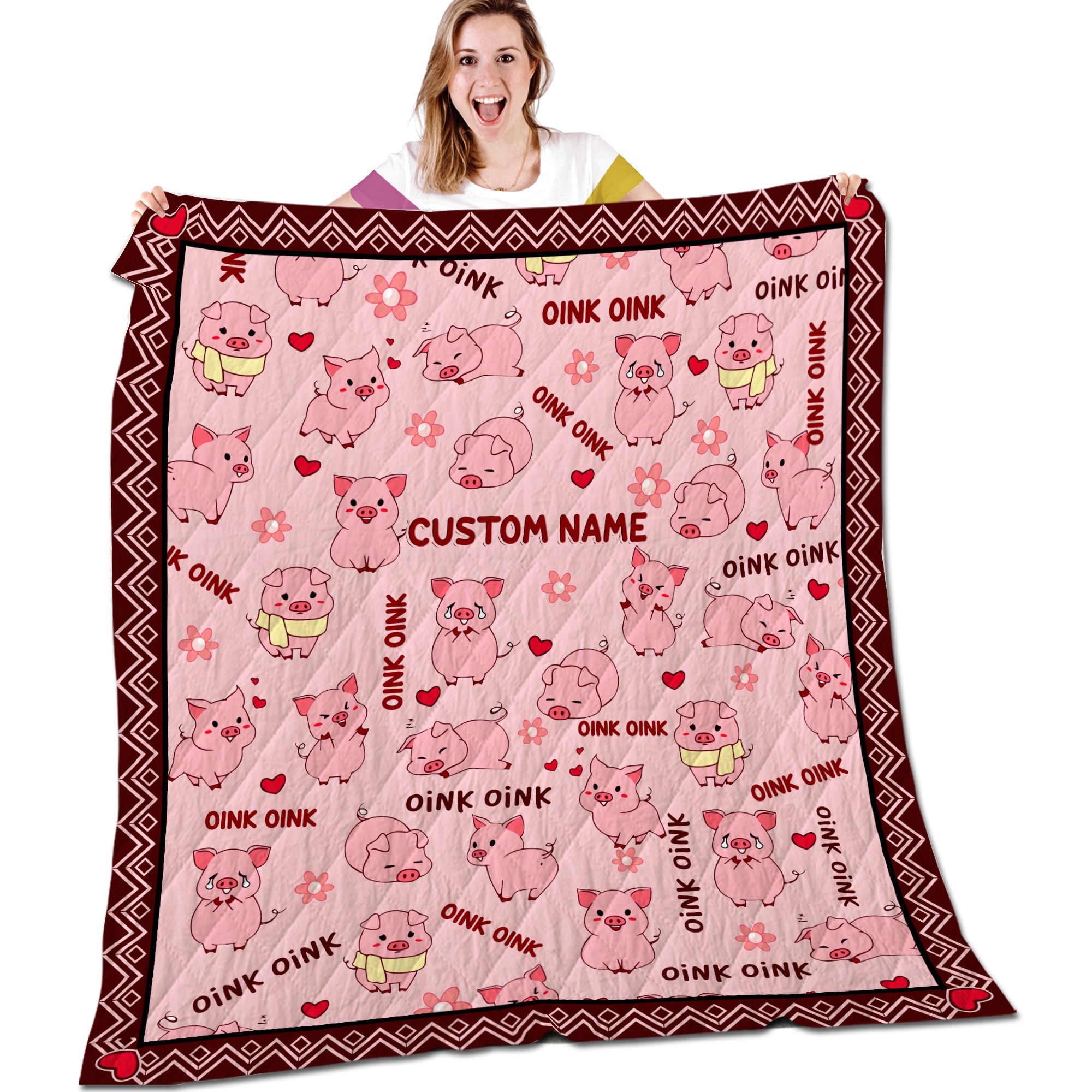 Oink Oink Cute Little Pig Custom Name Quilt For Animal Lovers In Winter And Daily Life