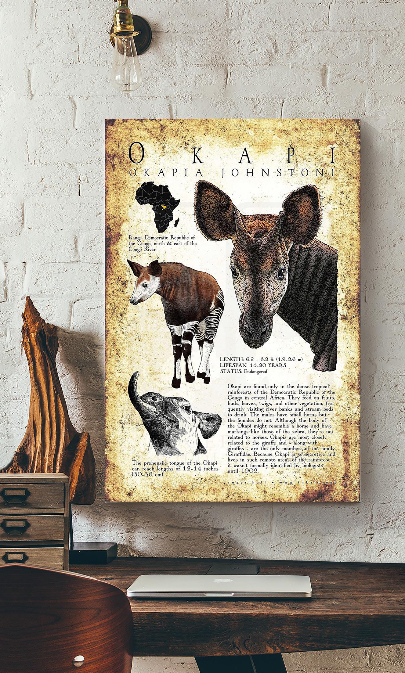 Okapi Poster Animal Wall Art For Lab Museum Decor Wrapped Canvas