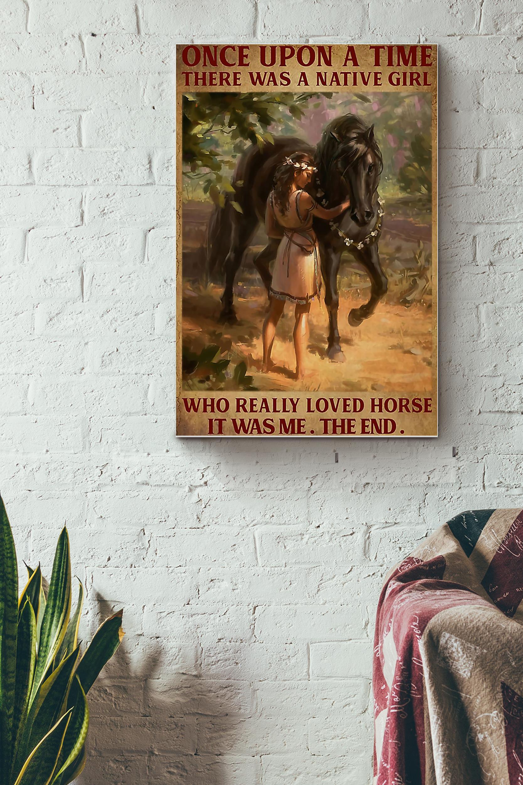 Once Upon A Time Native Girl Loved Horse Poster – Native American Wall Art Canvas – Gift For Girl Women Female Horse Lover Animal Lover Native American Lover Local Cultrure Lover Tourist (Unframed) Poster