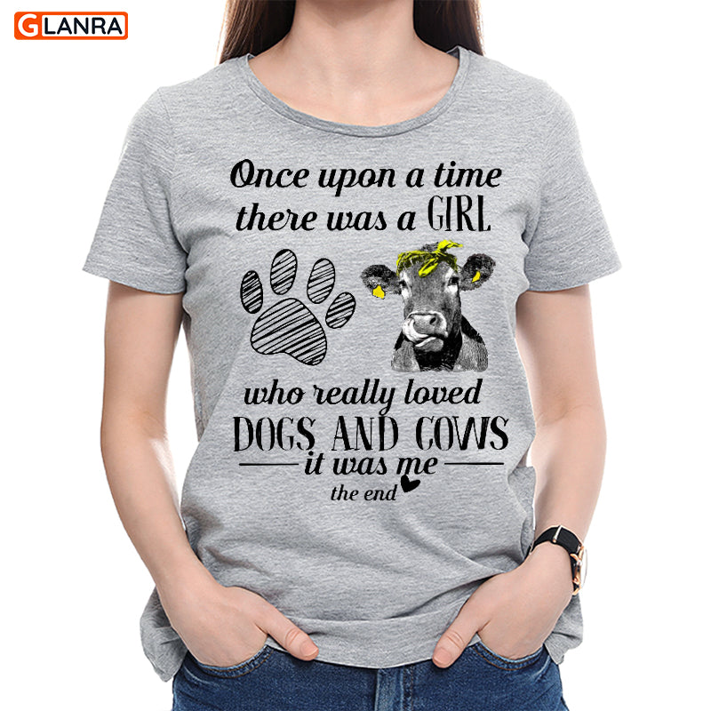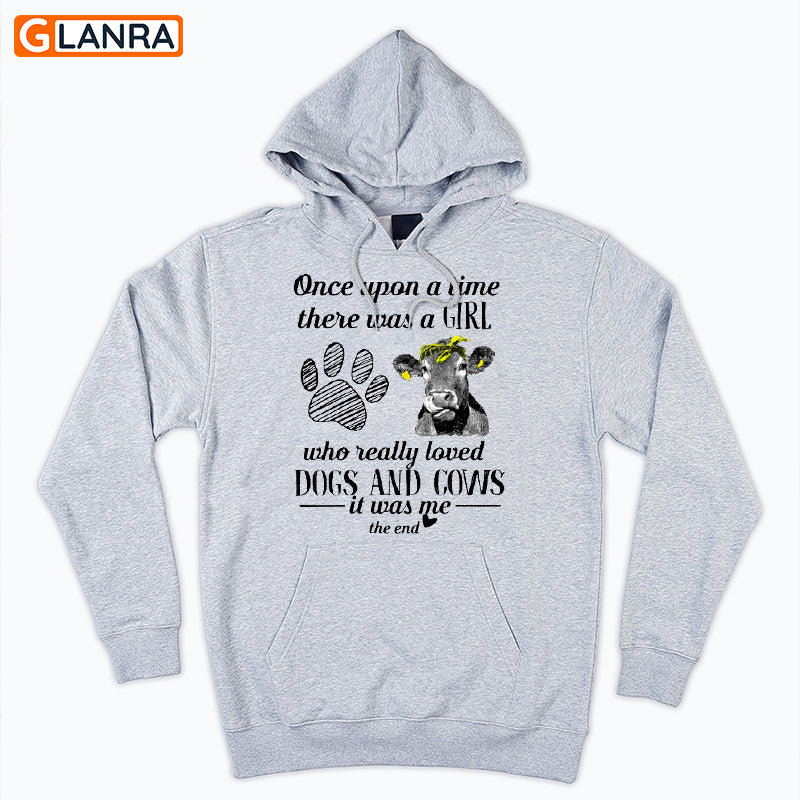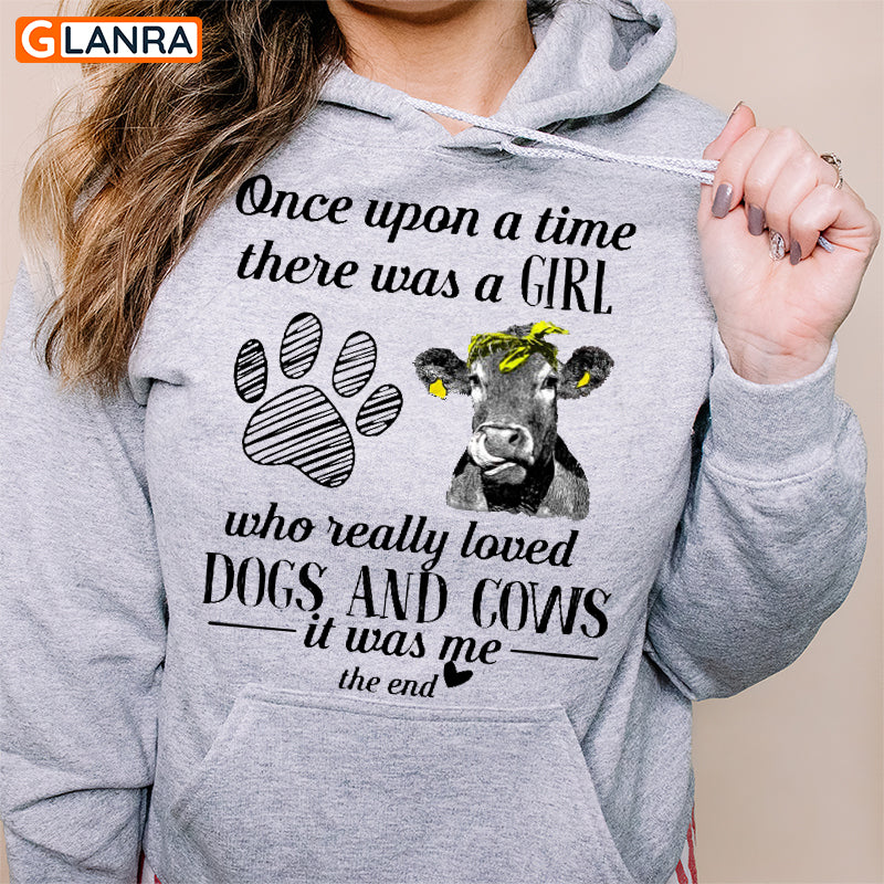Once Upon A Time There Was Girl Who Loved Dogs And Cows Shirt, Dog Shirt, Cow Lover Hoodie, Cow Shirt, Farmer Shirt, Animal Lover Gift