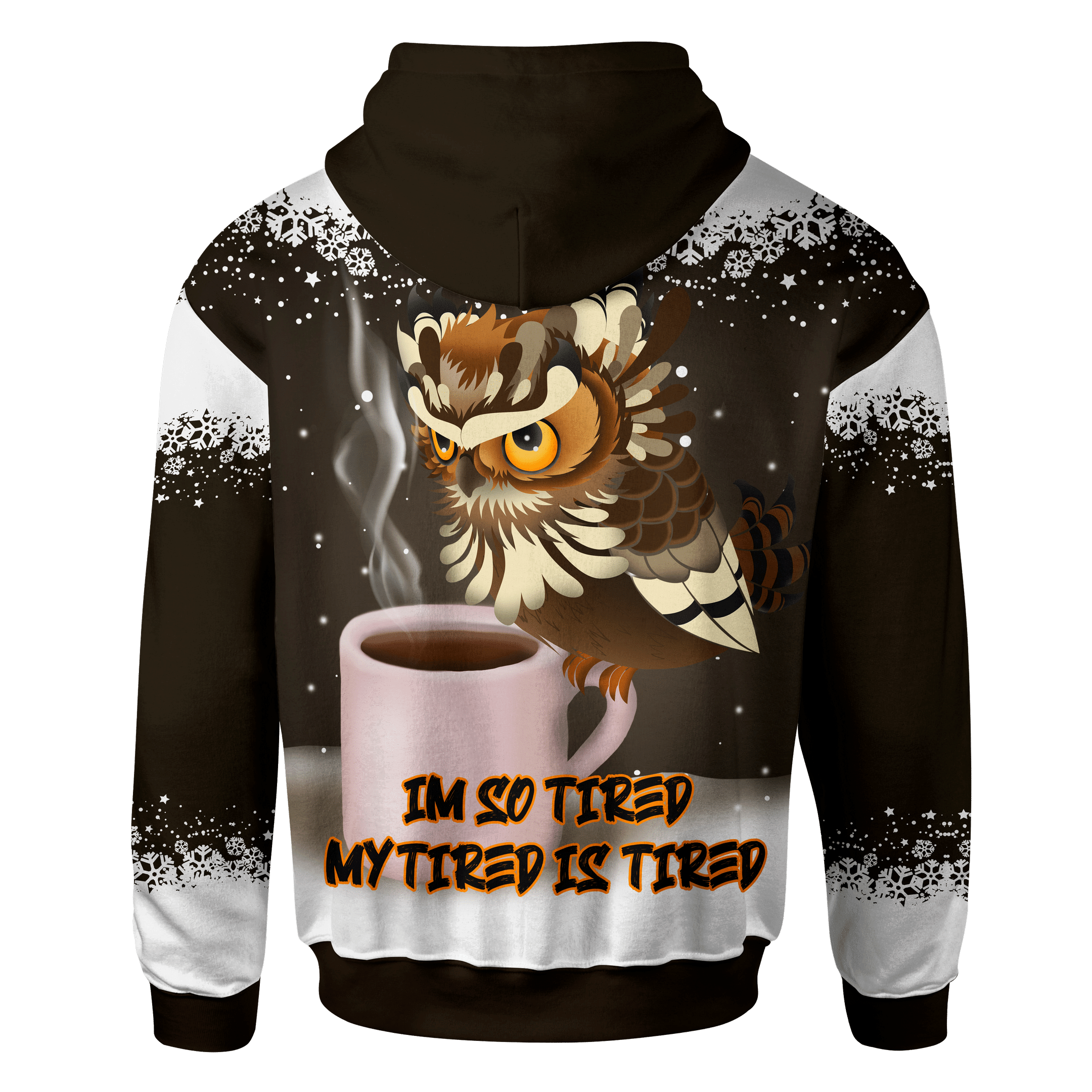 Owl Im So Tired Animals Winter Coffee Customized 3D All Over Print Hoodie For Men Women