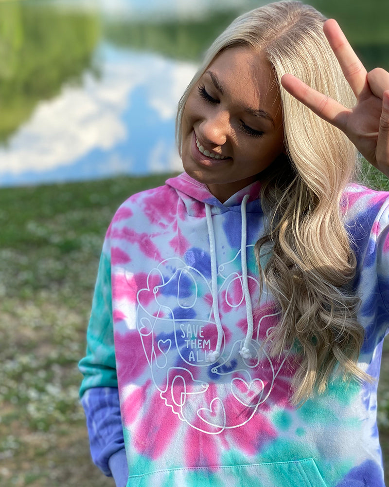 Pawz + Best Friends Animal Heart Outline Tutti Frutti Tie Dye Hoodie