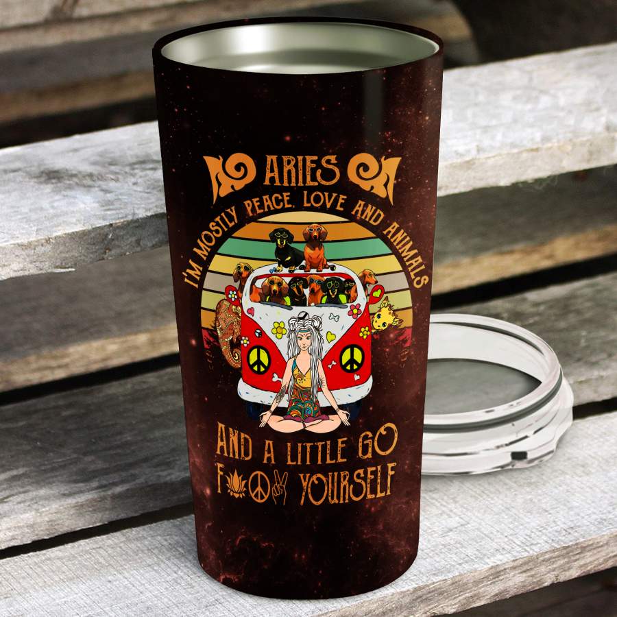Peace Love And Animals Aries – Perfect Gift For Aries – Personalized 1 Insulated Stainless Steel Tumbler Cup