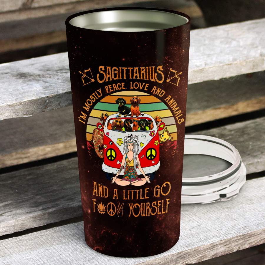 Peace Love And Animals Sagittarius – Perfect Gift For Sagittarius – Personalized 1 Insulated Stainless Steel Tumbler Cup